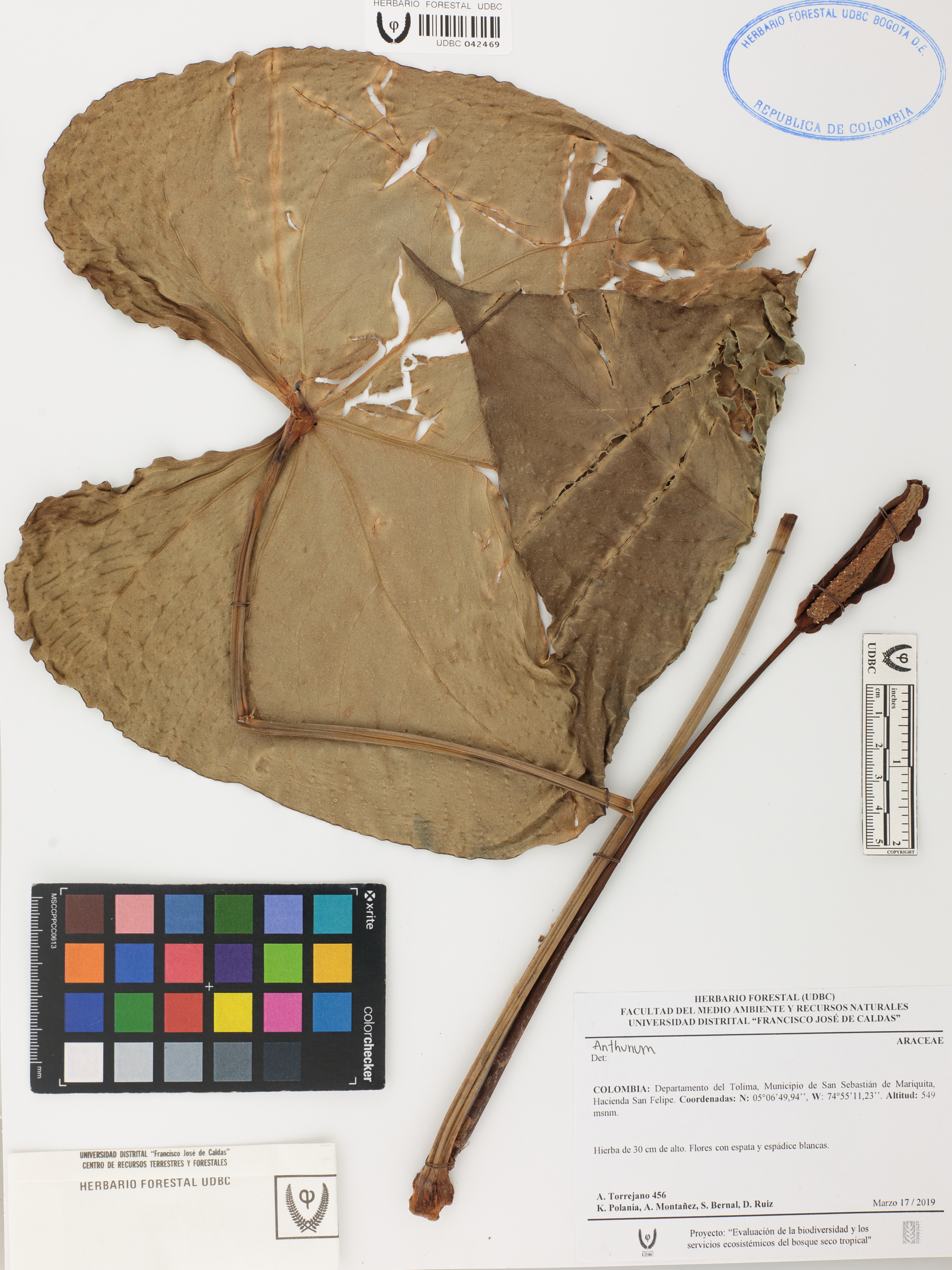 Fotografía del ejemplar Torrejano, A. 456, determinado como Anthurium sp.