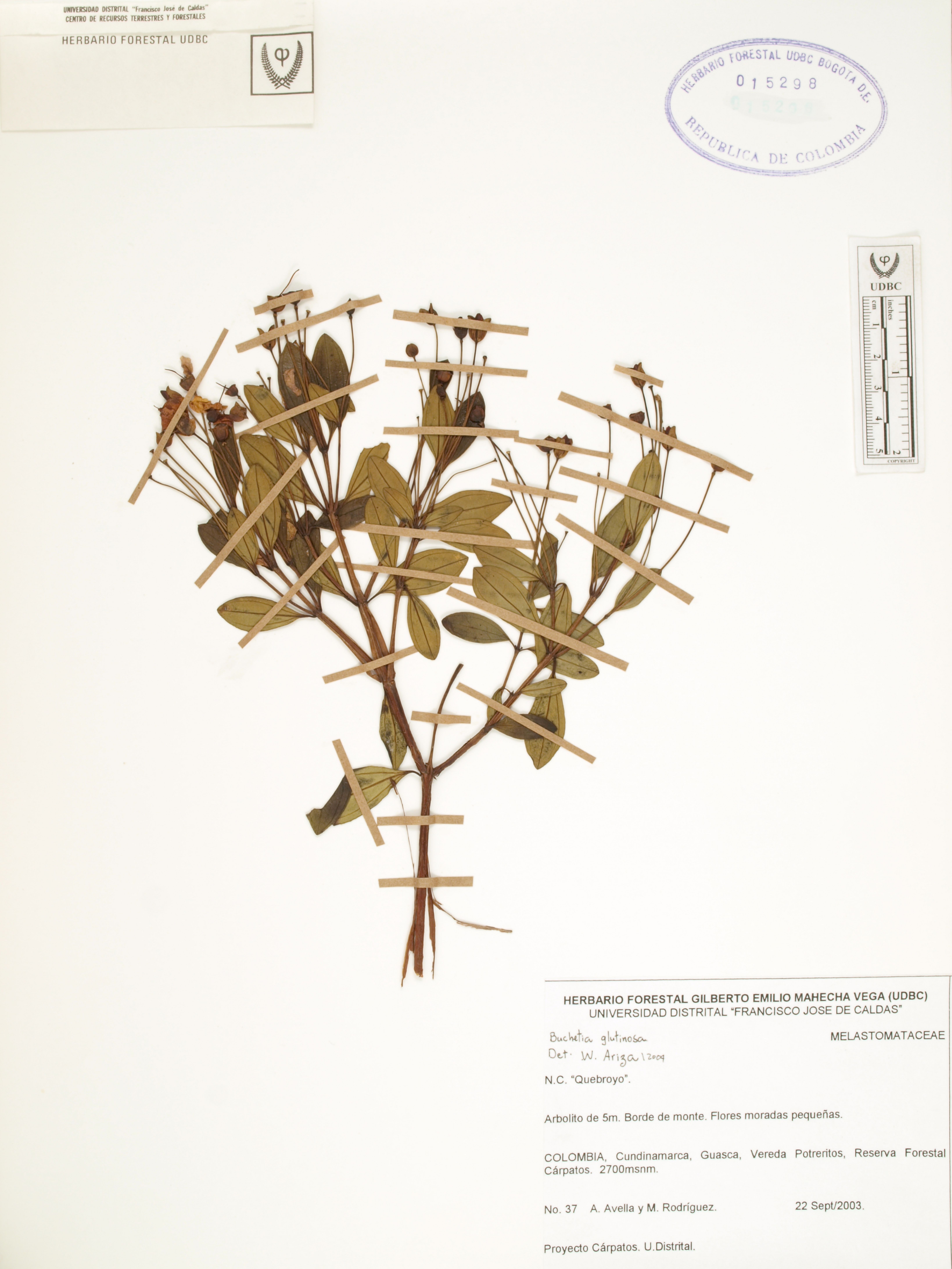 | dc.description | Fotografía del ejemplar Avella, A. 37, determinado como Bucquetia glutinosa en el año 2004 | |