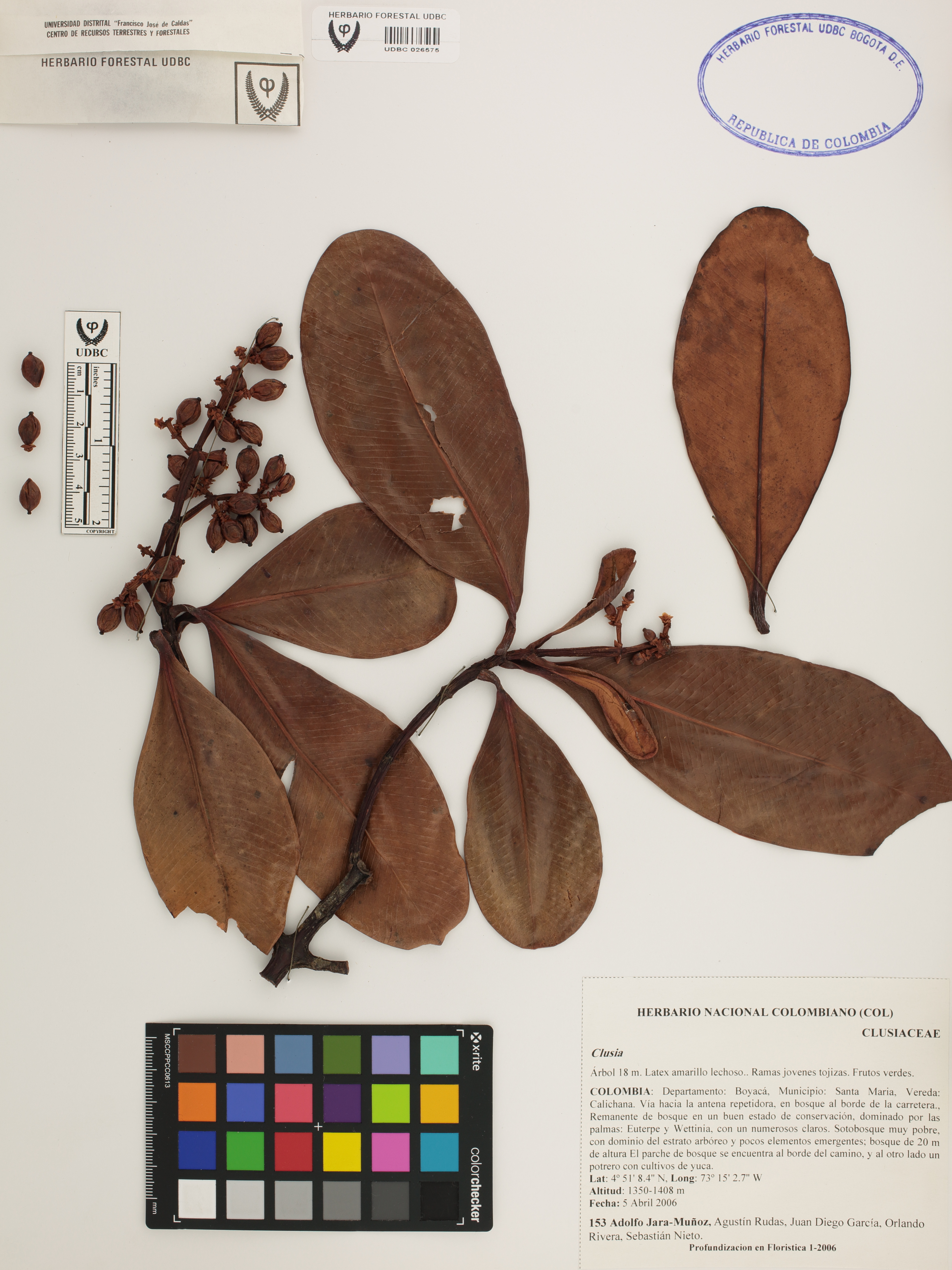 Fotografía del ejemplar Jara-Muñoz, A. 153, determinado como Clusia sp.