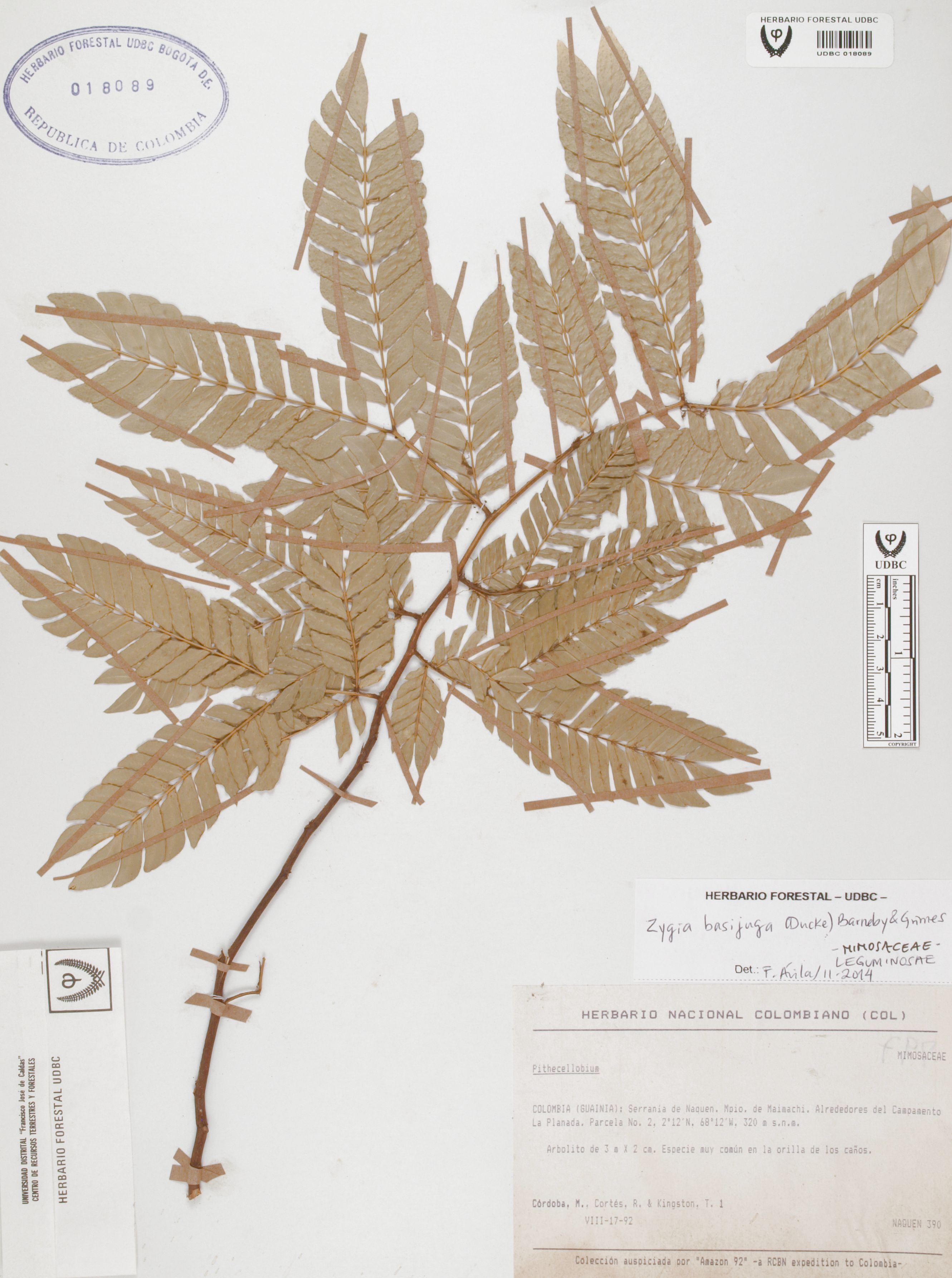 Fotografía del ejemplar Córdoba, M. 1, determinado como Zygia basijuga en el año 2014