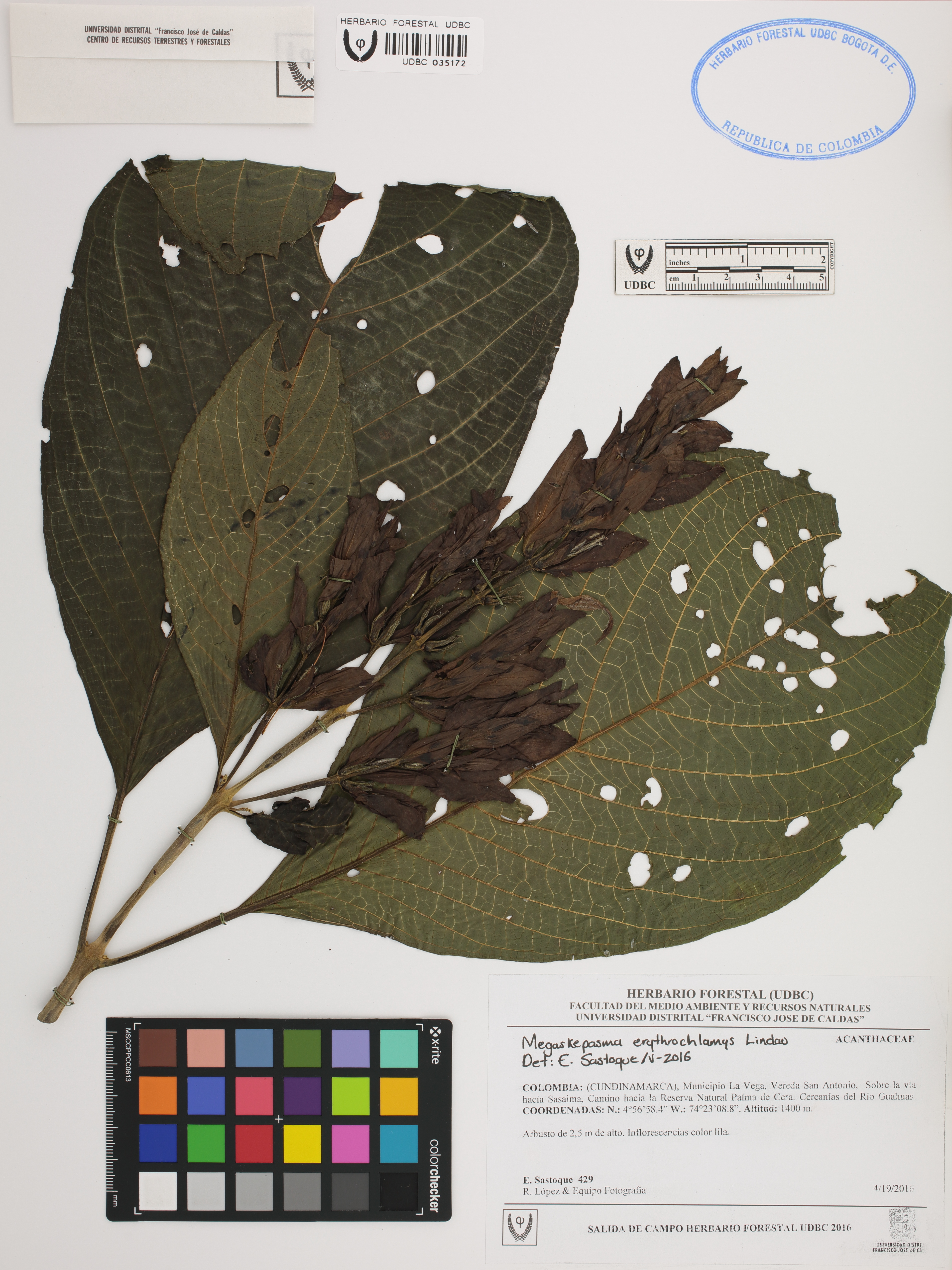 Fotografía del ejemplar Sastoque, E. 429, determinado como Megaskepasma erythrochlamys en el año 2016