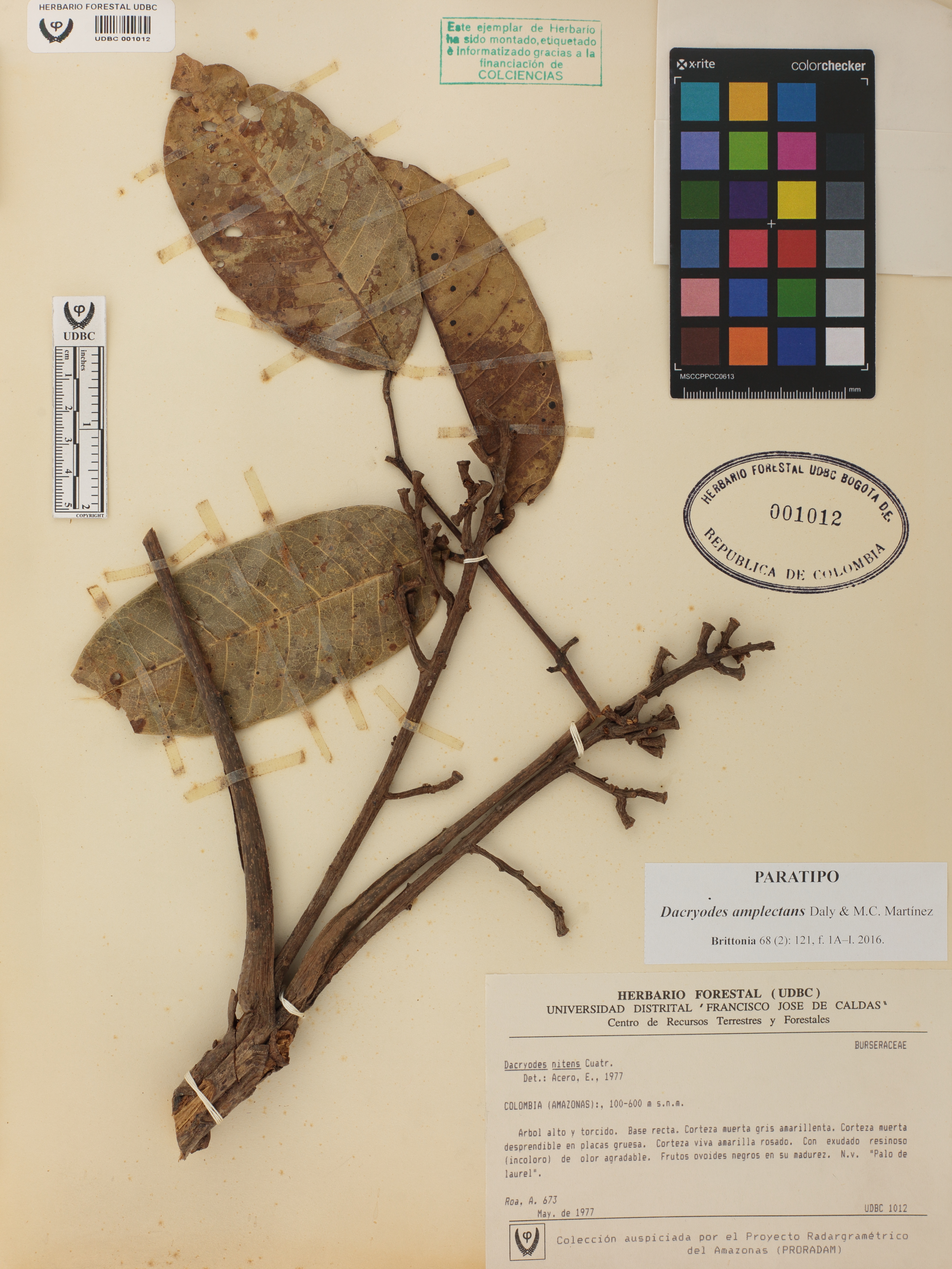 Fotografía del ejemplar Roa, A. 673, Paratipo de Dacryodes amplectans