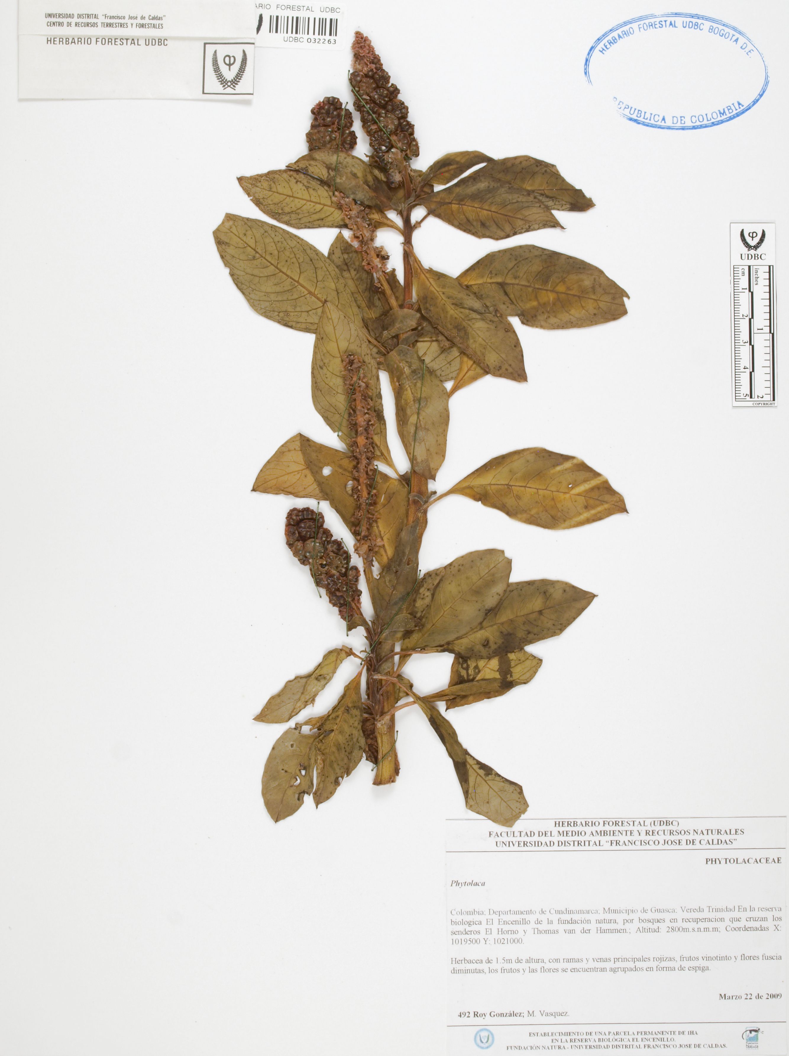 Fotografía del ejemplar González, R. 492, determinado como Phytolacca sp.