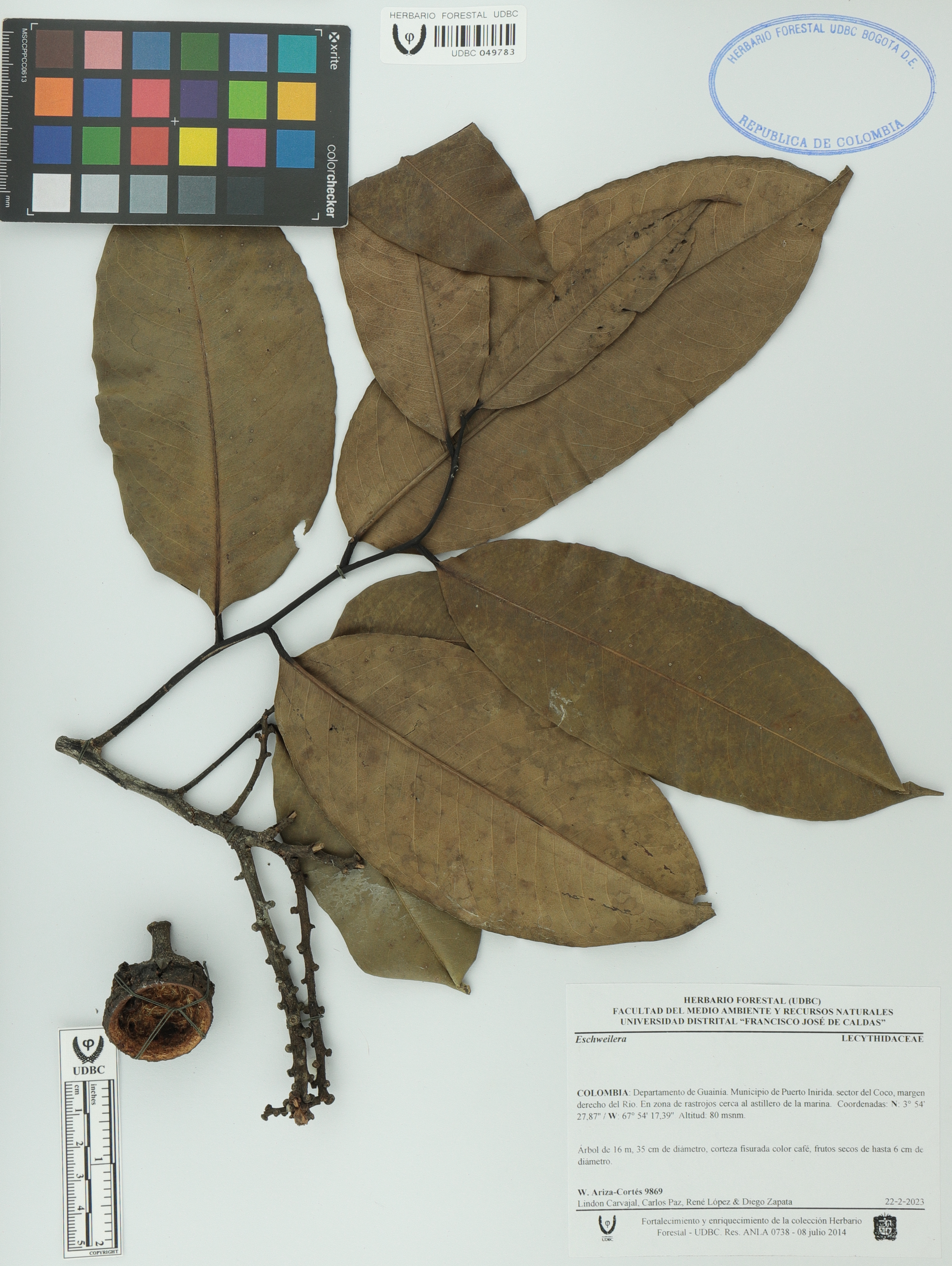 Fotografía del ejemplar Ariza-Cortés, W. 9869, determinado como Eschweilera sp.
