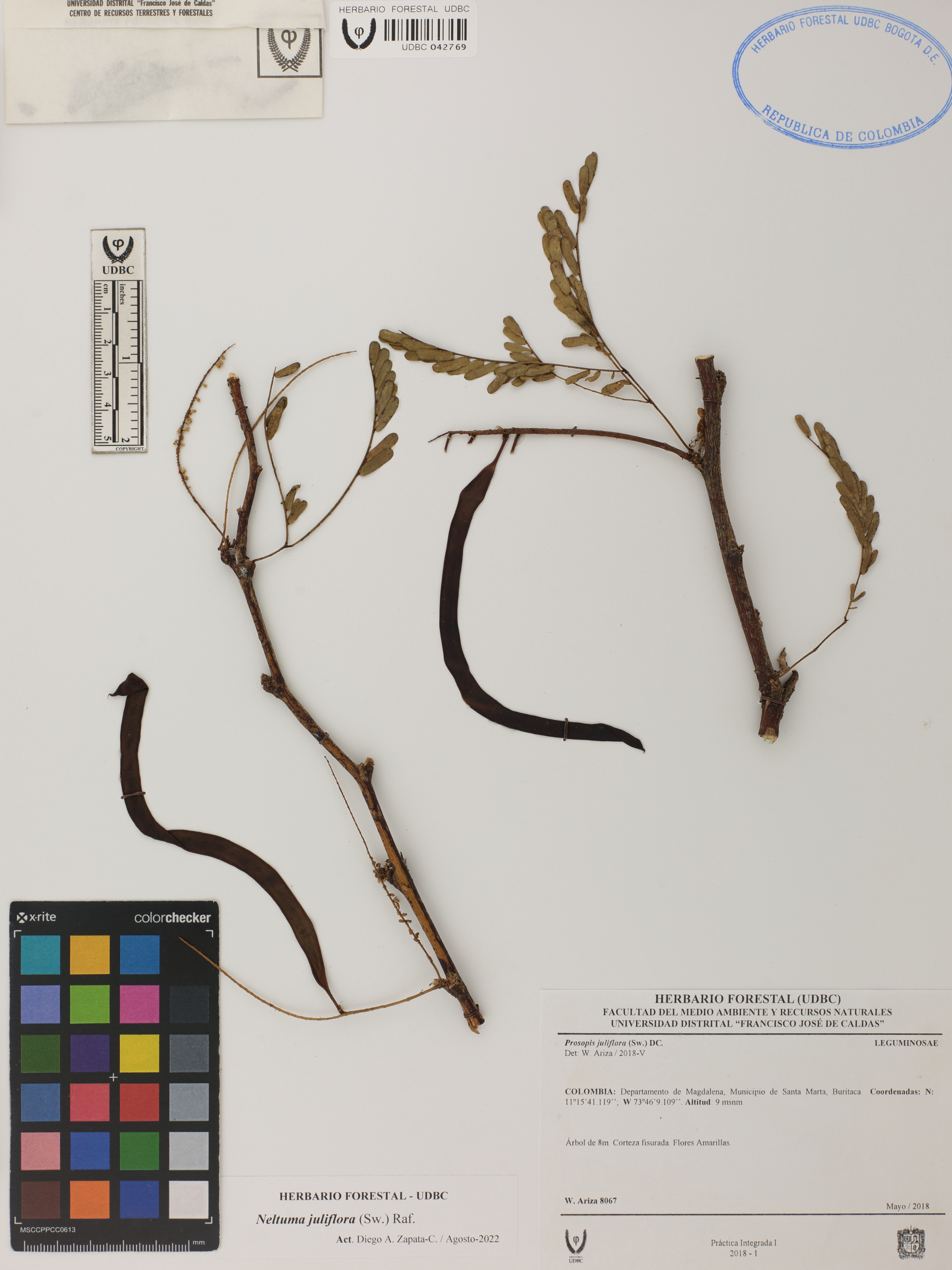 Fotografía del ejemplar Ariza, W. 8067, determinado como Neltuma juliflora en el año 2018