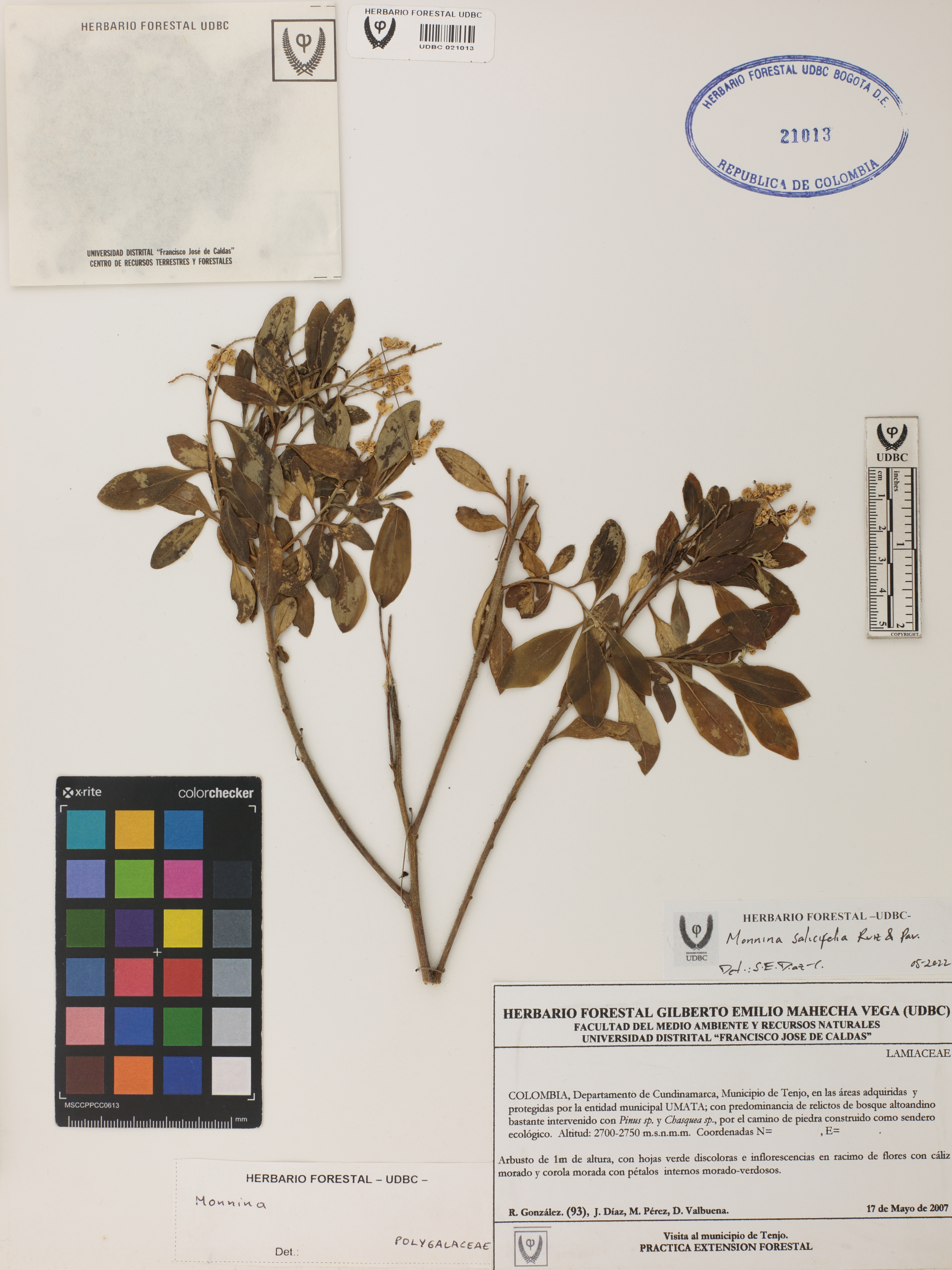 Fotografía del ejemplar González, R. 93, determinado como Monnina salicifolia en el año 2022