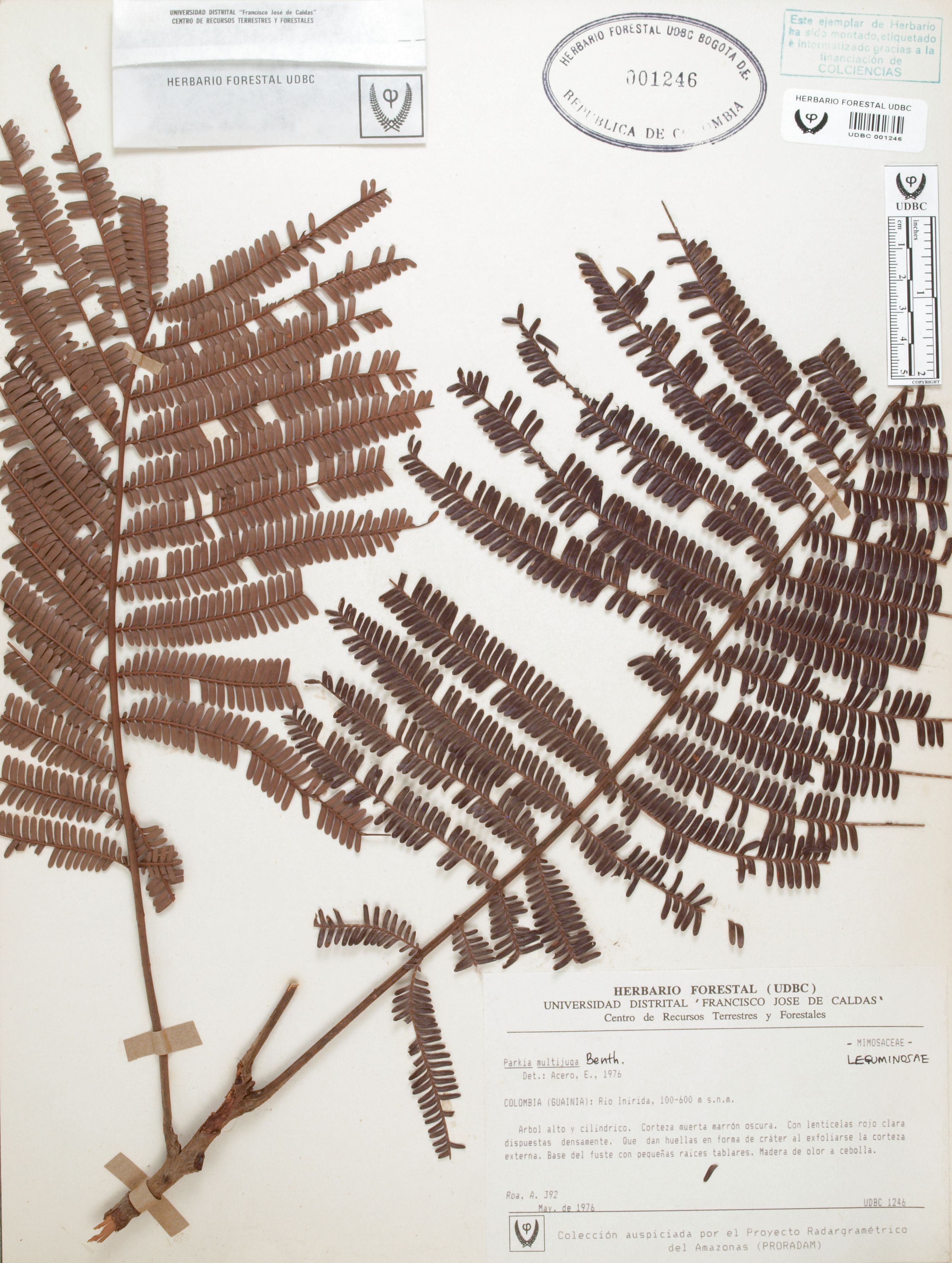 | dc.description | Fotografía del ejemplar Roa, A. 392, determinado como Parkia multijuga en el año 1976 | |