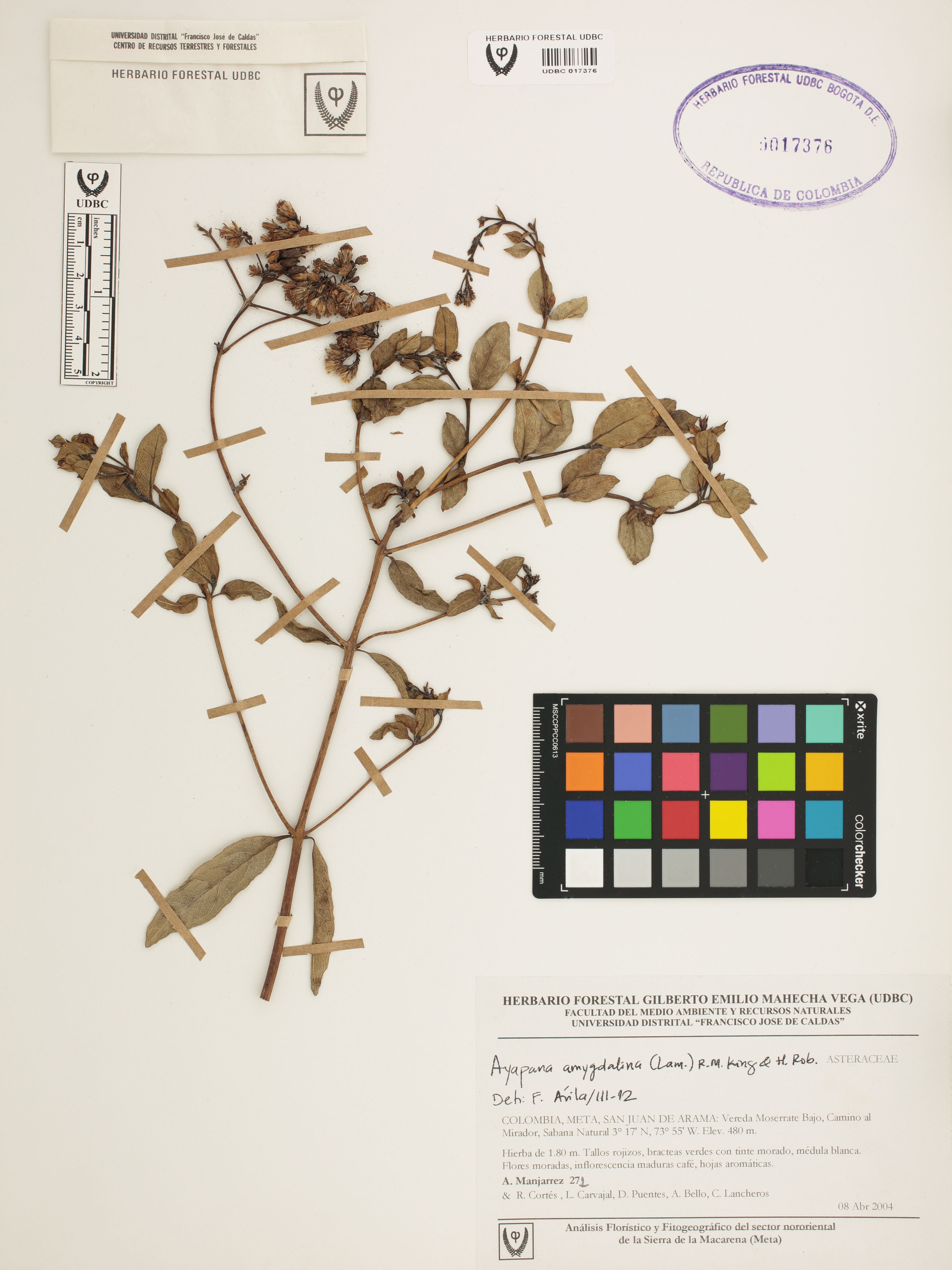 Fotografía del ejemplar Manjarrez, A. 271, determinado como Ayapana amygdalina en el año 2012