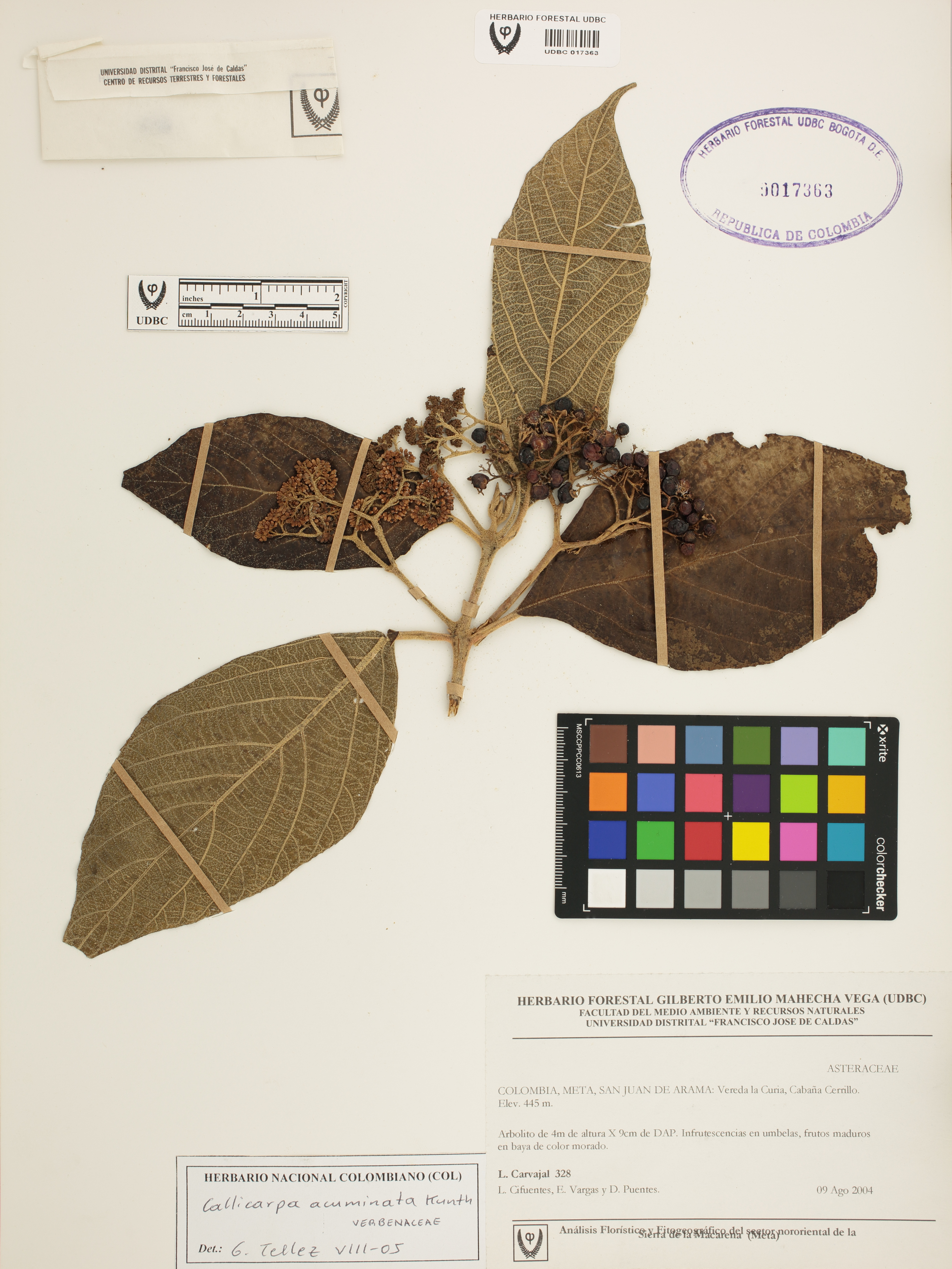 Fotografía del ejemplar Carvajal, L. 328, determinado como Callicarpa acuminata en el año 2005