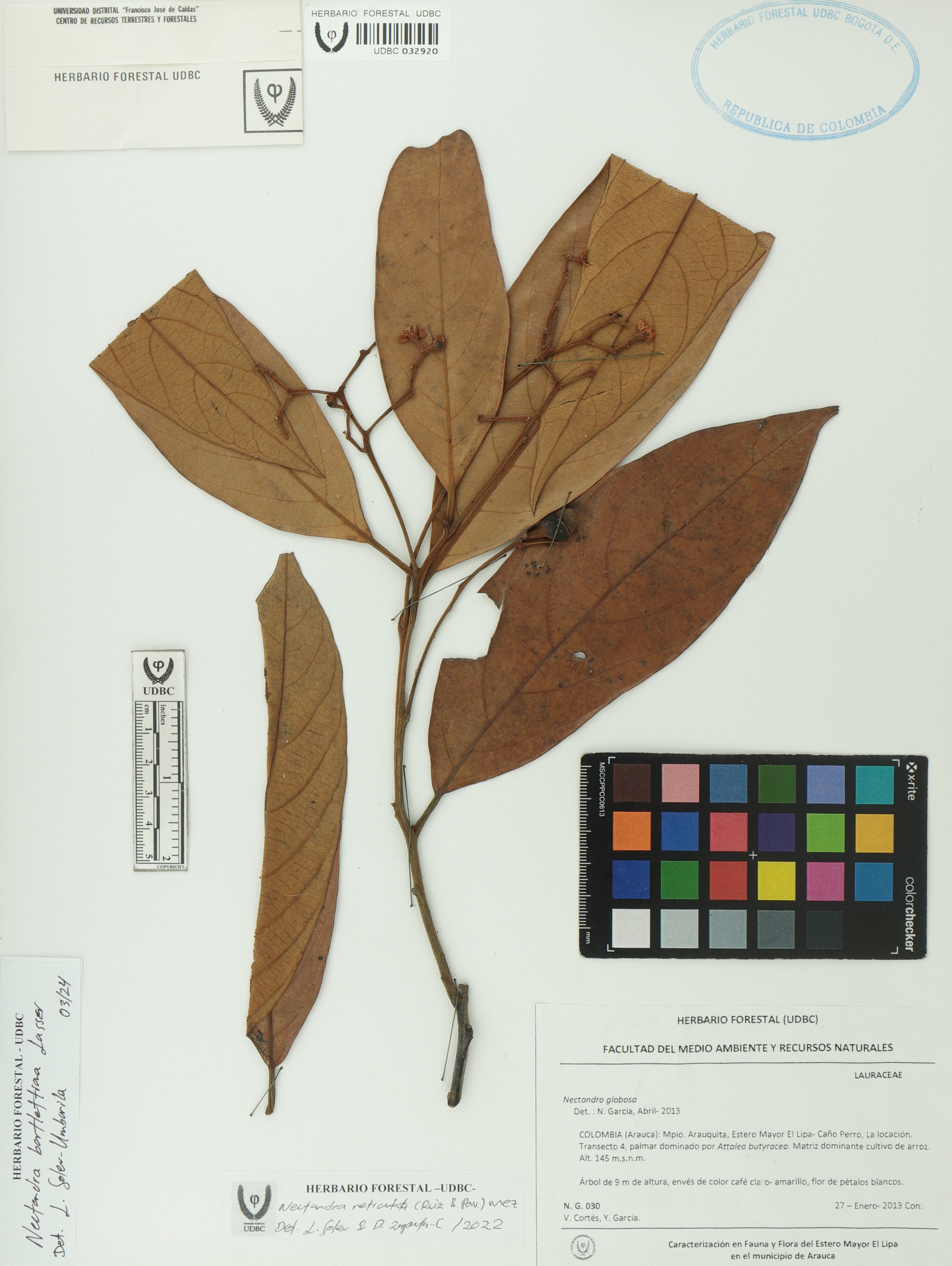 Fotografía del ejemplar García, N. 30, determinado como Nectandra bartlettiana en el año 2024