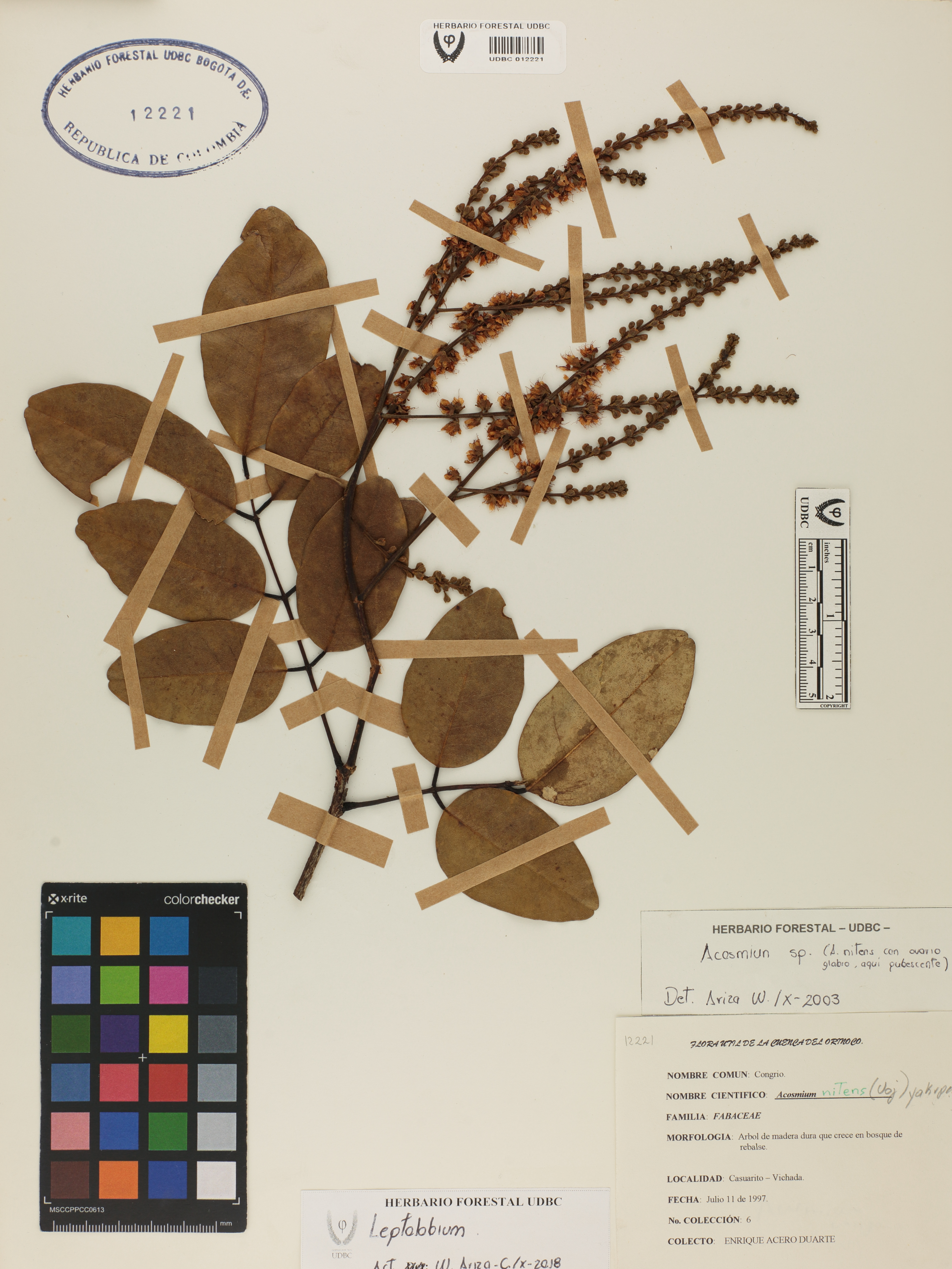 Fotografía del ejemplar Acero, E. 6, determinado como Leptolobium sp. en el año 2018