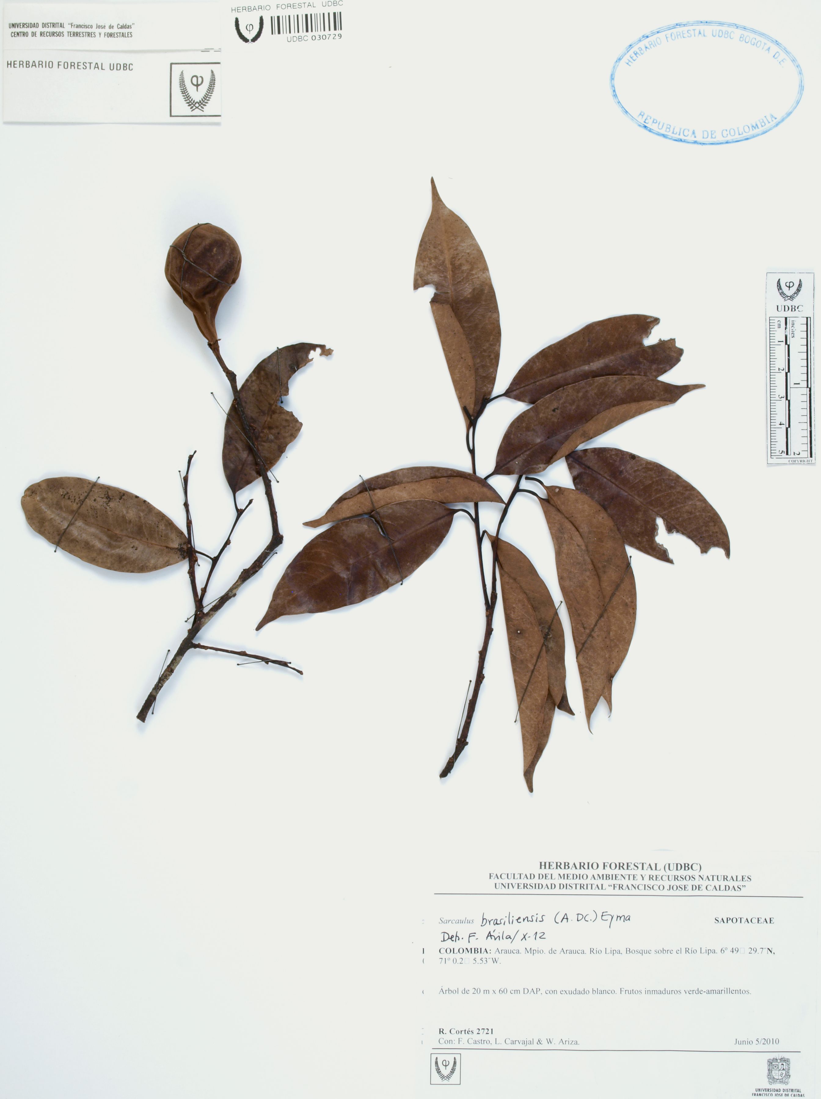 Fotografía del ejemplar Cortés-B., R. 2721, determinado como Sarcaulus brasiliensis en el año 2012