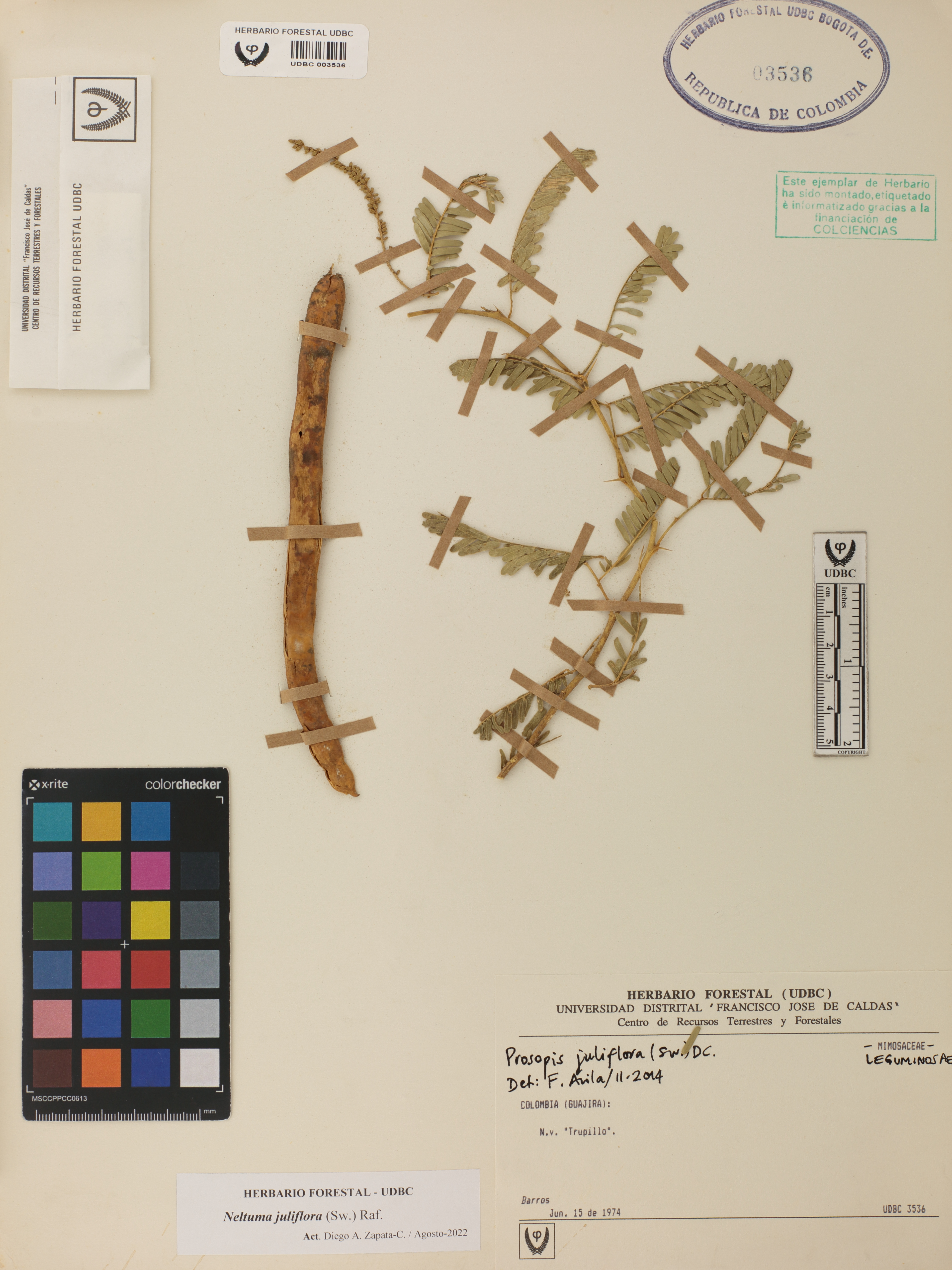 Fotografía del ejemplar Barros, J., determinado como Neltuma juliflora en el año 2014