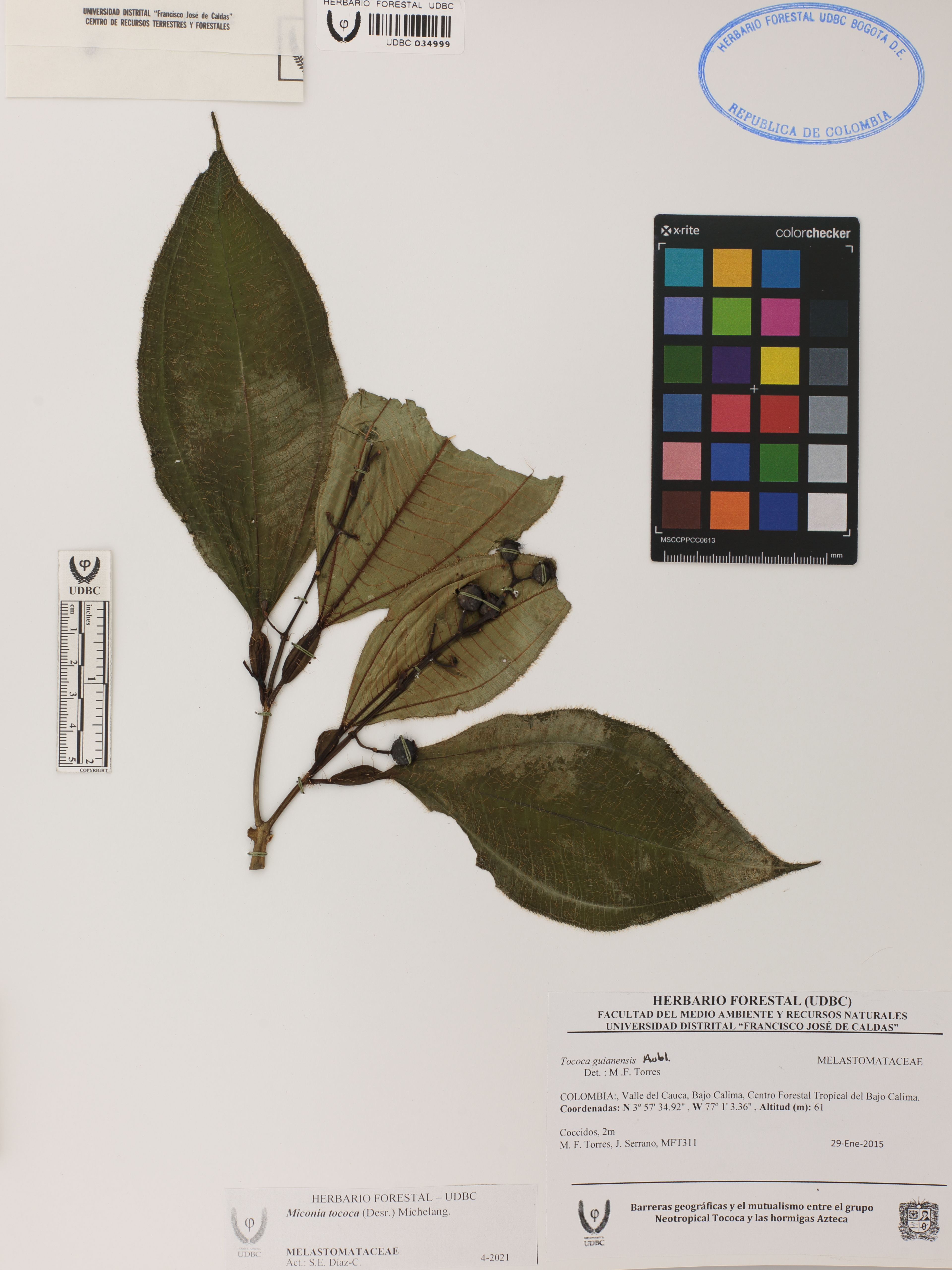 | dc.description | Fotografía del ejemplar Torres, M. 311, determinado como Miconia tococa en el año 2016 | |