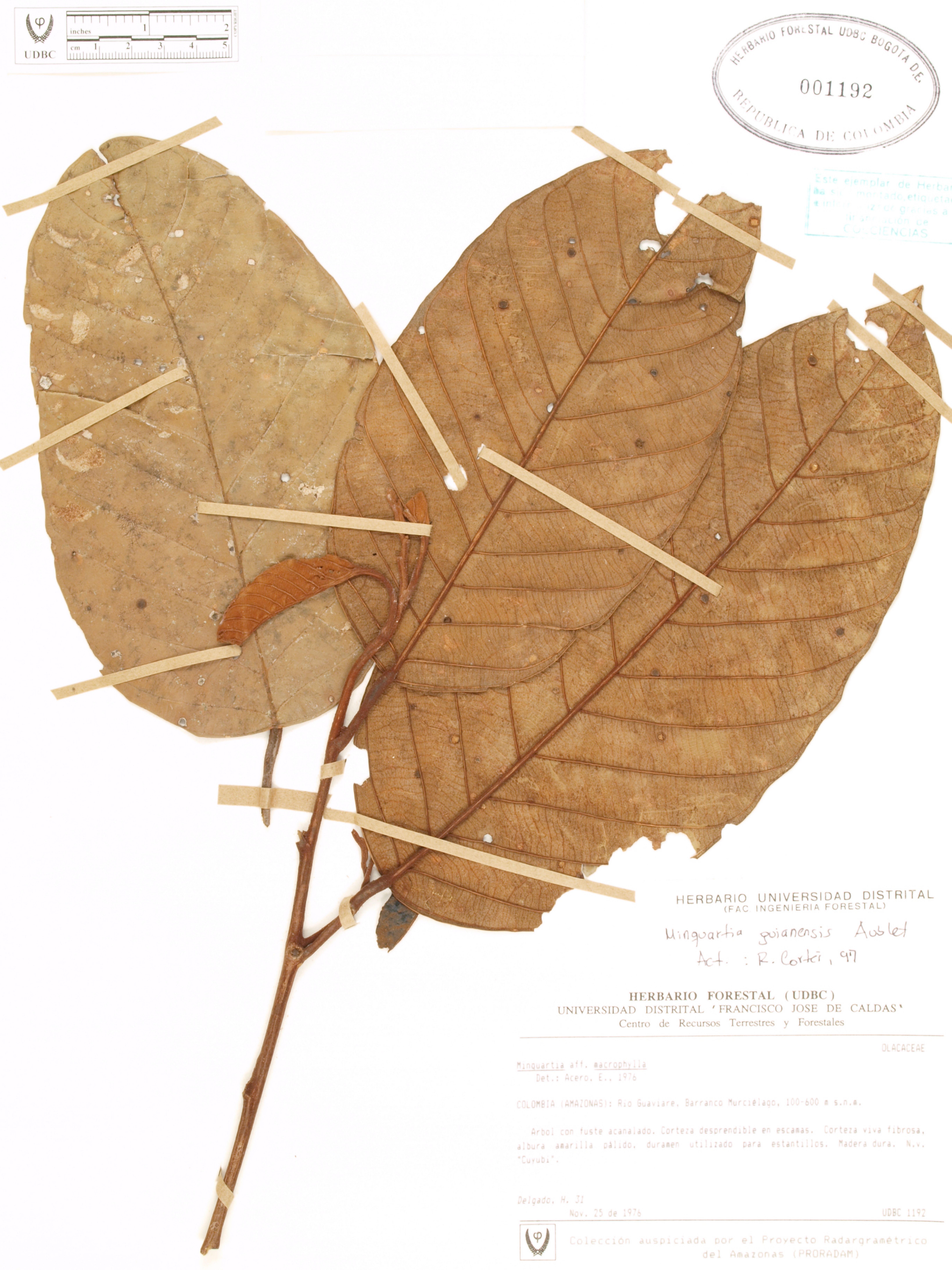 Fotografía del ejemplar Delgado, H. 31, determinado como Minquartia guianensis en el año 1997
