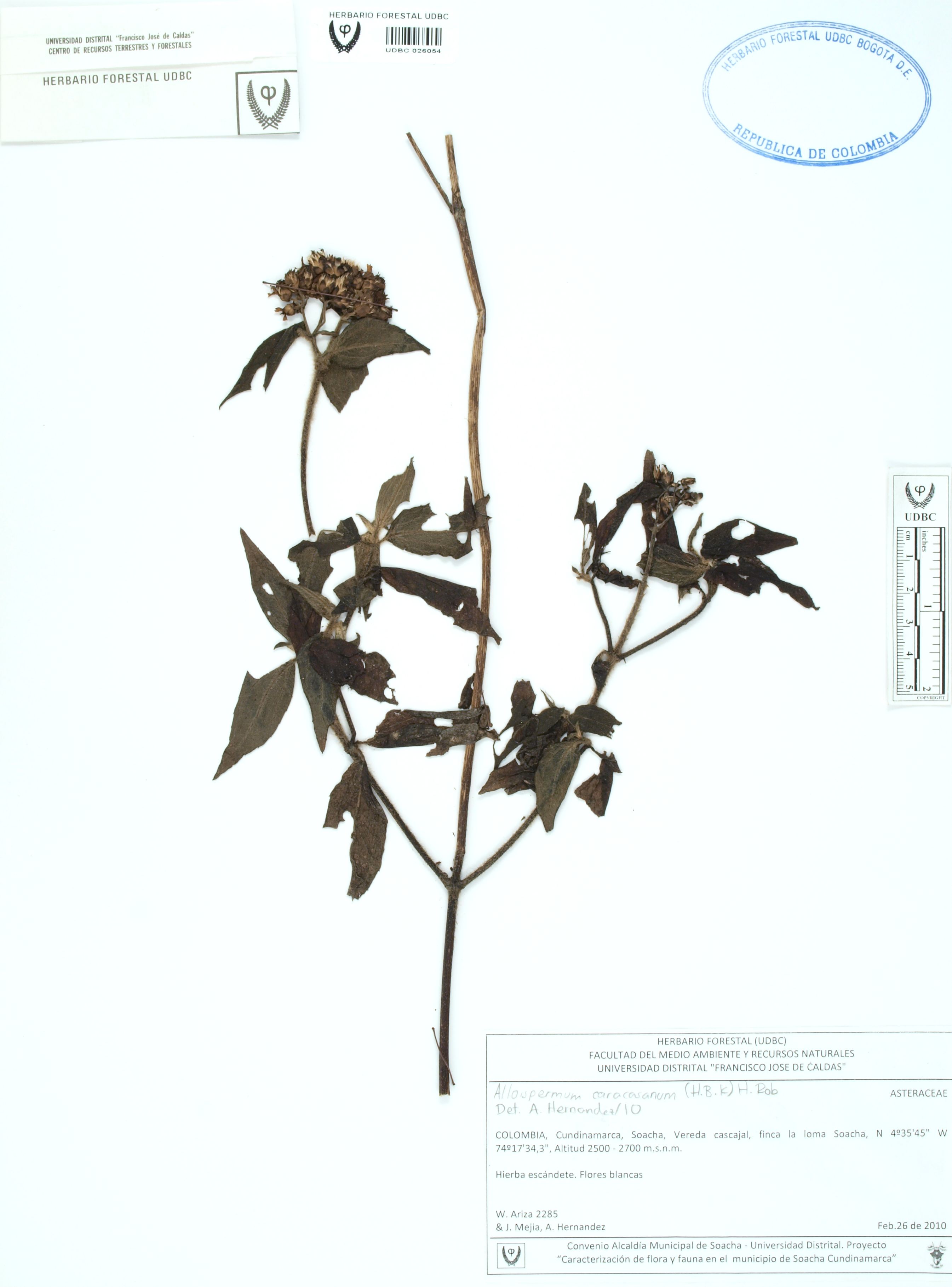 Fotografía del ejemplar Ariza, W. 2285, determinado como Alloispermum caracasanum en el año 2010