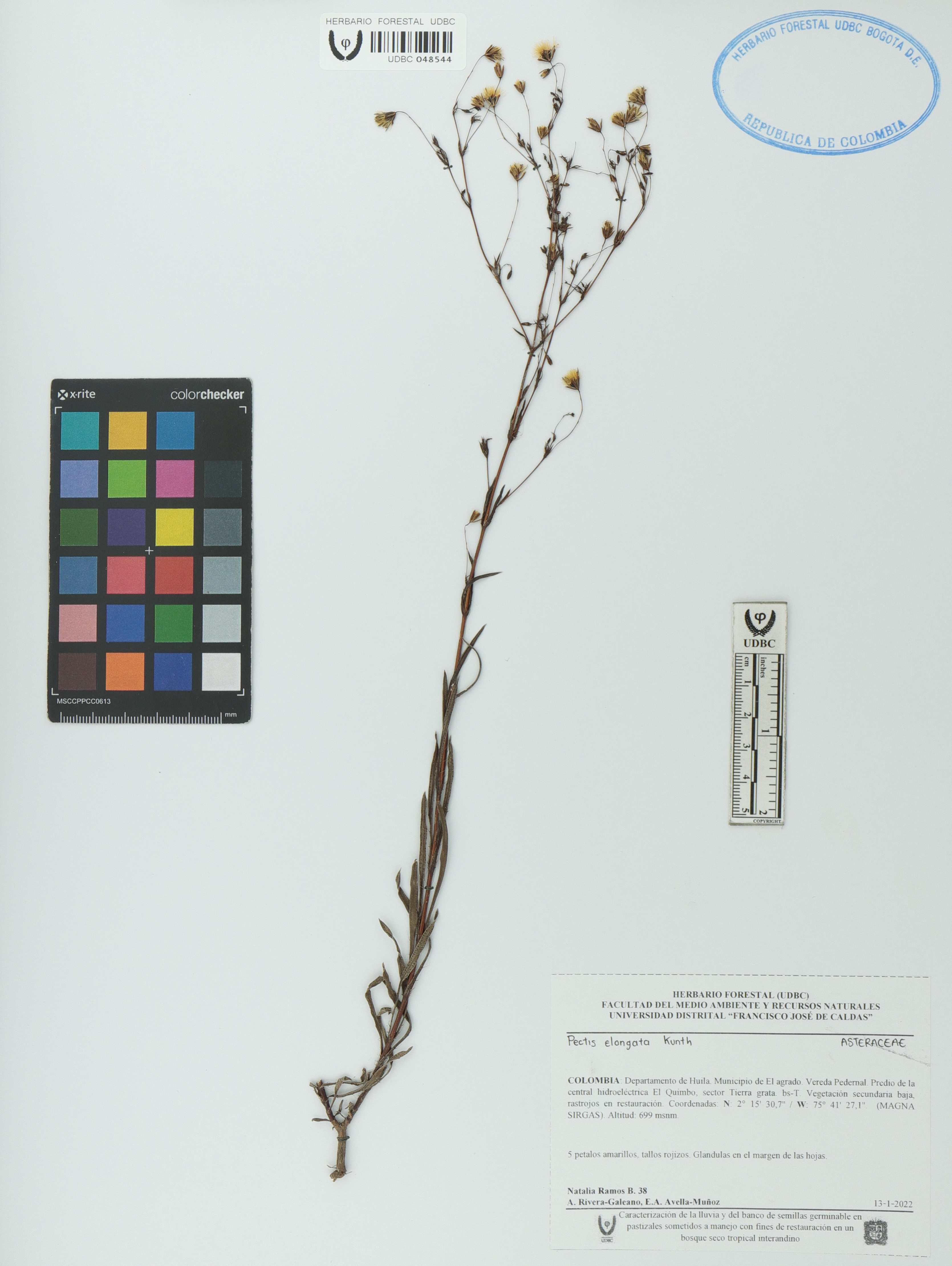 Fotografía del ejemplar Ramos-B., Natalia 38, determinado como Pectis elongata en el año 2022