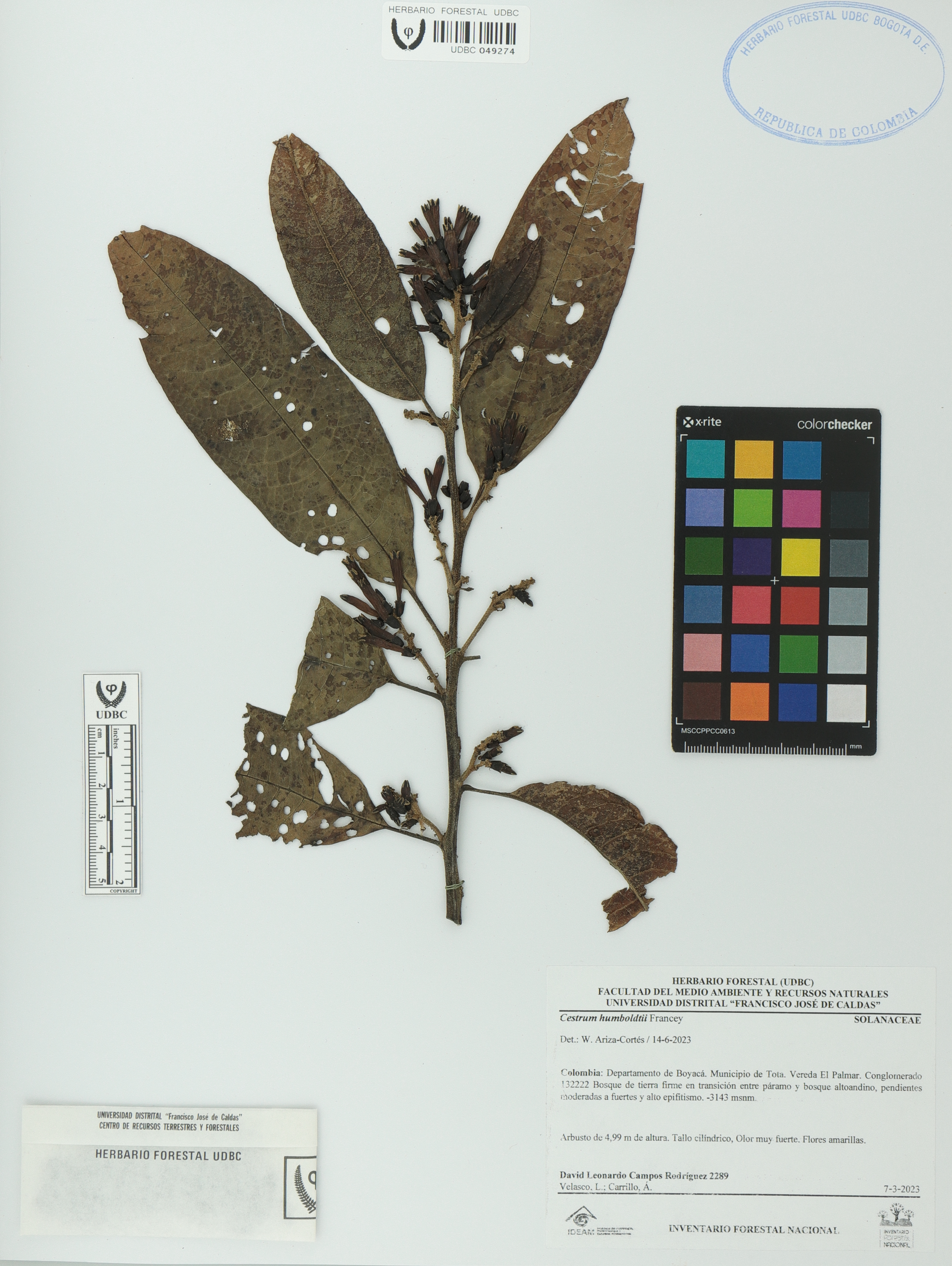 | dc.description | Fotografía del ejemplar Campos-Rodríguez, D. 2289, determinado como Cestrum humboldtii en el año 2023 | |