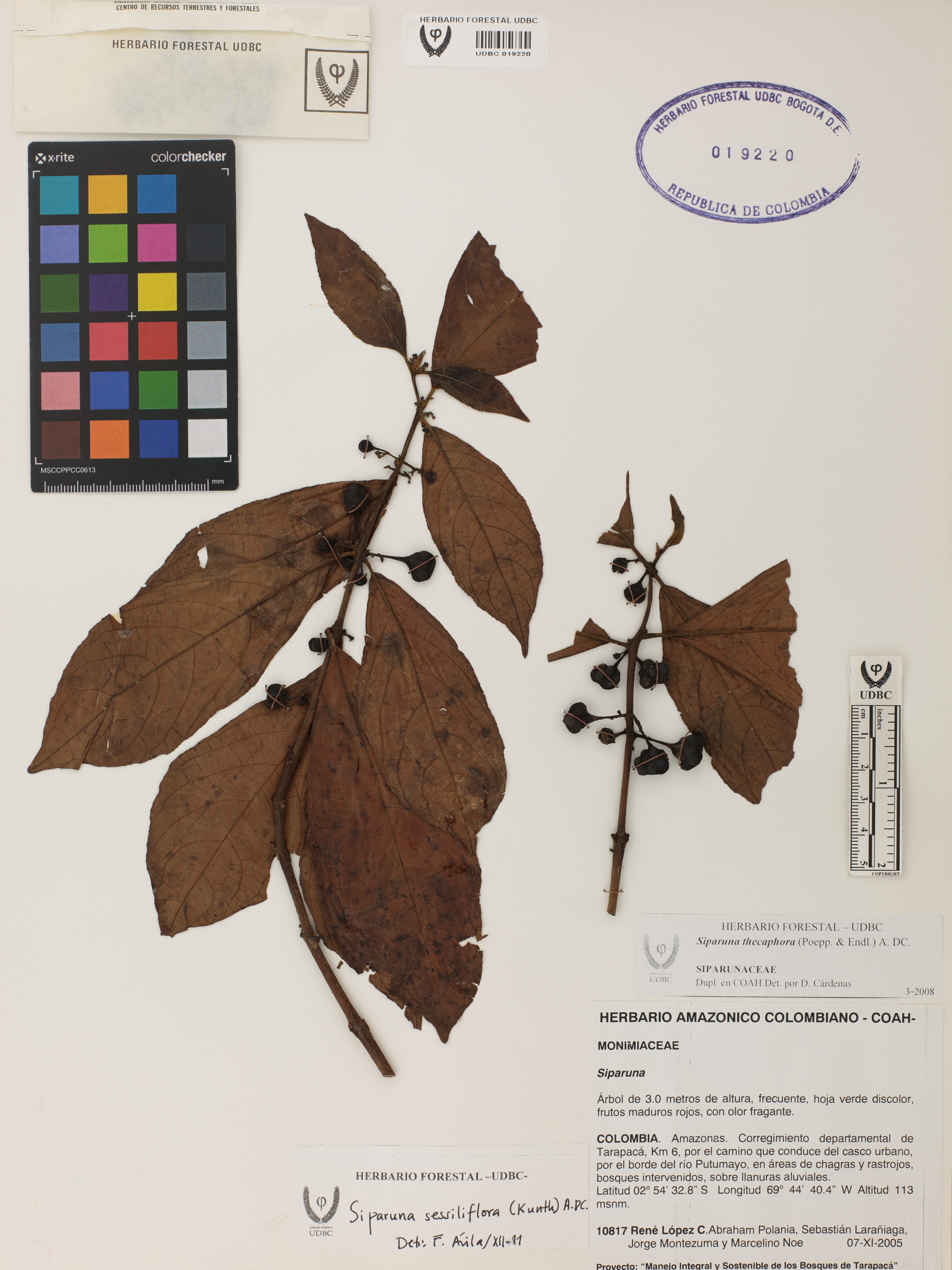 Fotografía del ejemplar López, R. 10817, determinado como Siparuna thecaphora en el año 2008