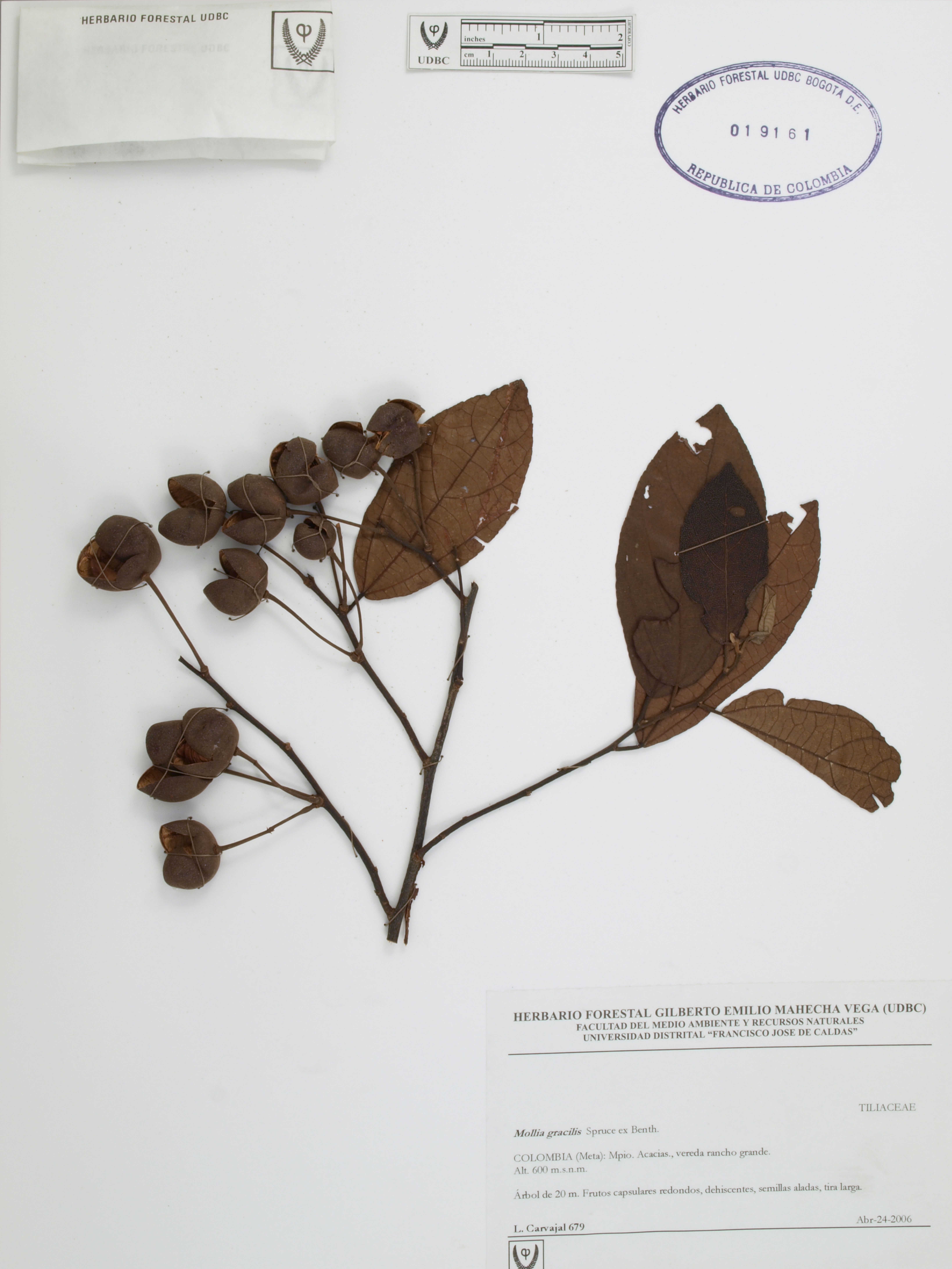 Fotografía del ejemplar Carvajal, L. 679, determinado como Mollia gracilis