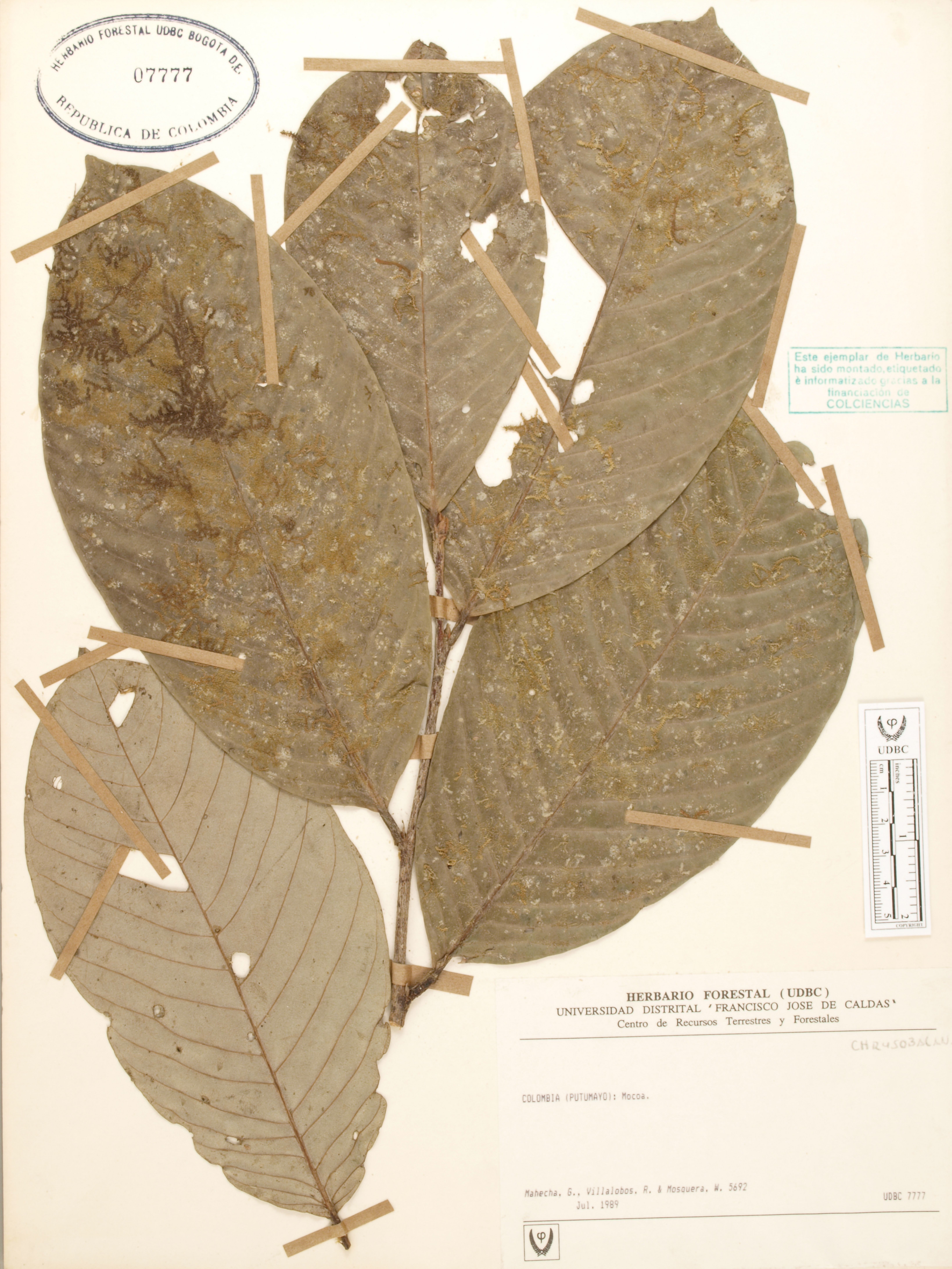 Fotografía del ejemplar Mahecha, G. 5692, determinado como Chrysobalanaceae