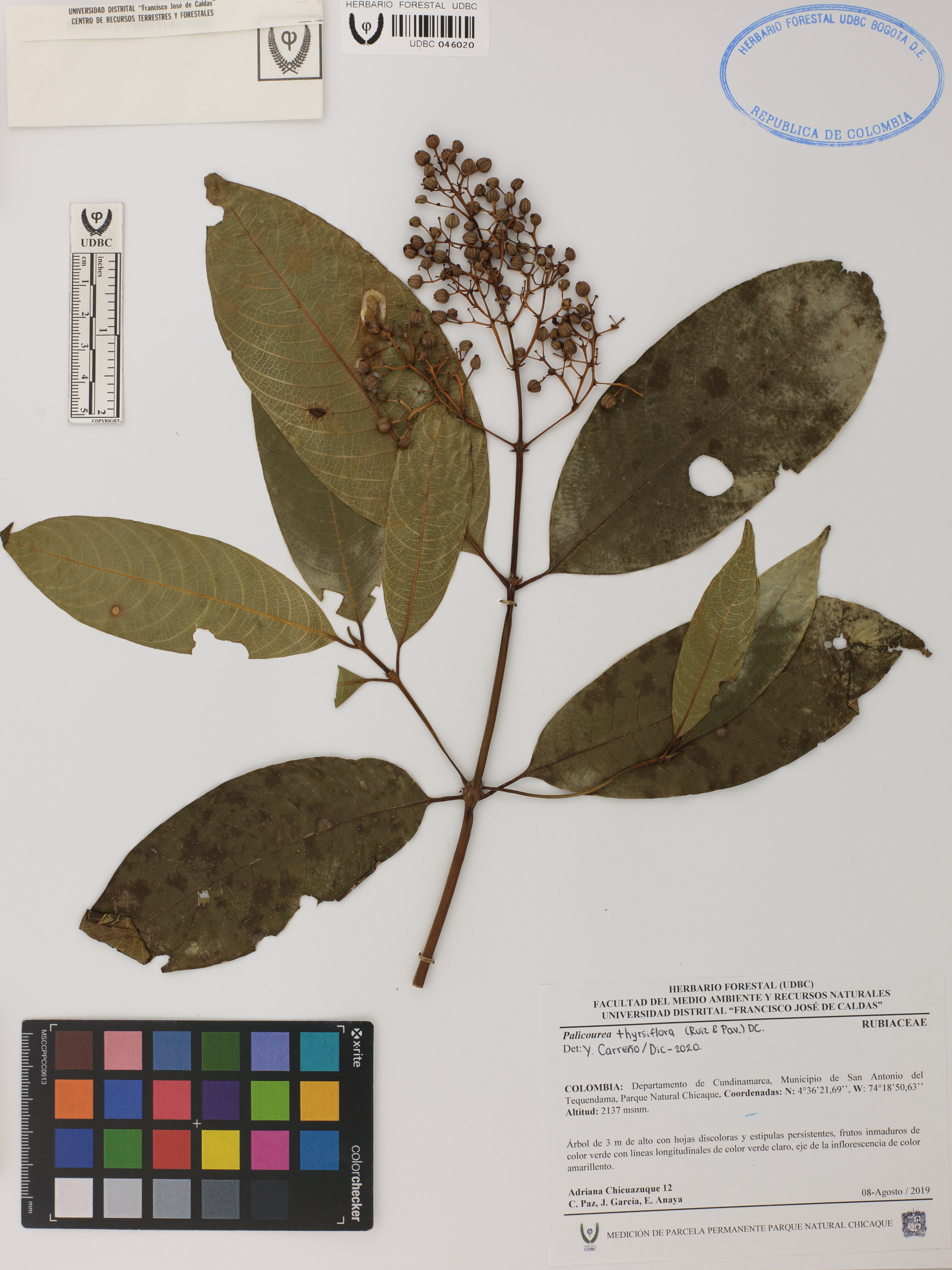 | dc.description | Fotografía del ejemplar Chicuazuque, A. 12, determinado como Palicourea thyrsiflora en el año 2020 | |
