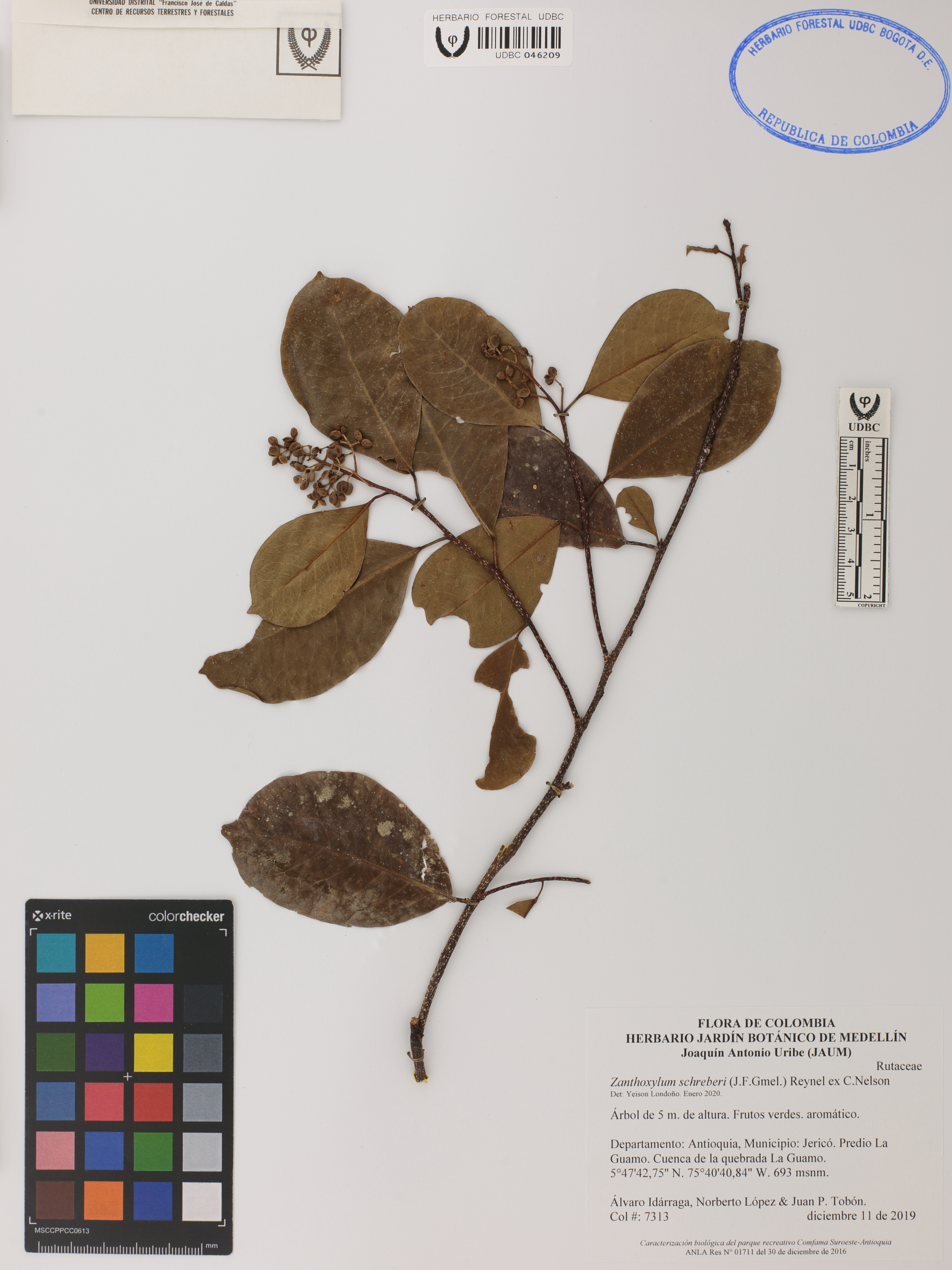 Fotografía del ejemplar Idárraga, Á. 7313, determinado como Zanthoxylum schreberi en el año 2020