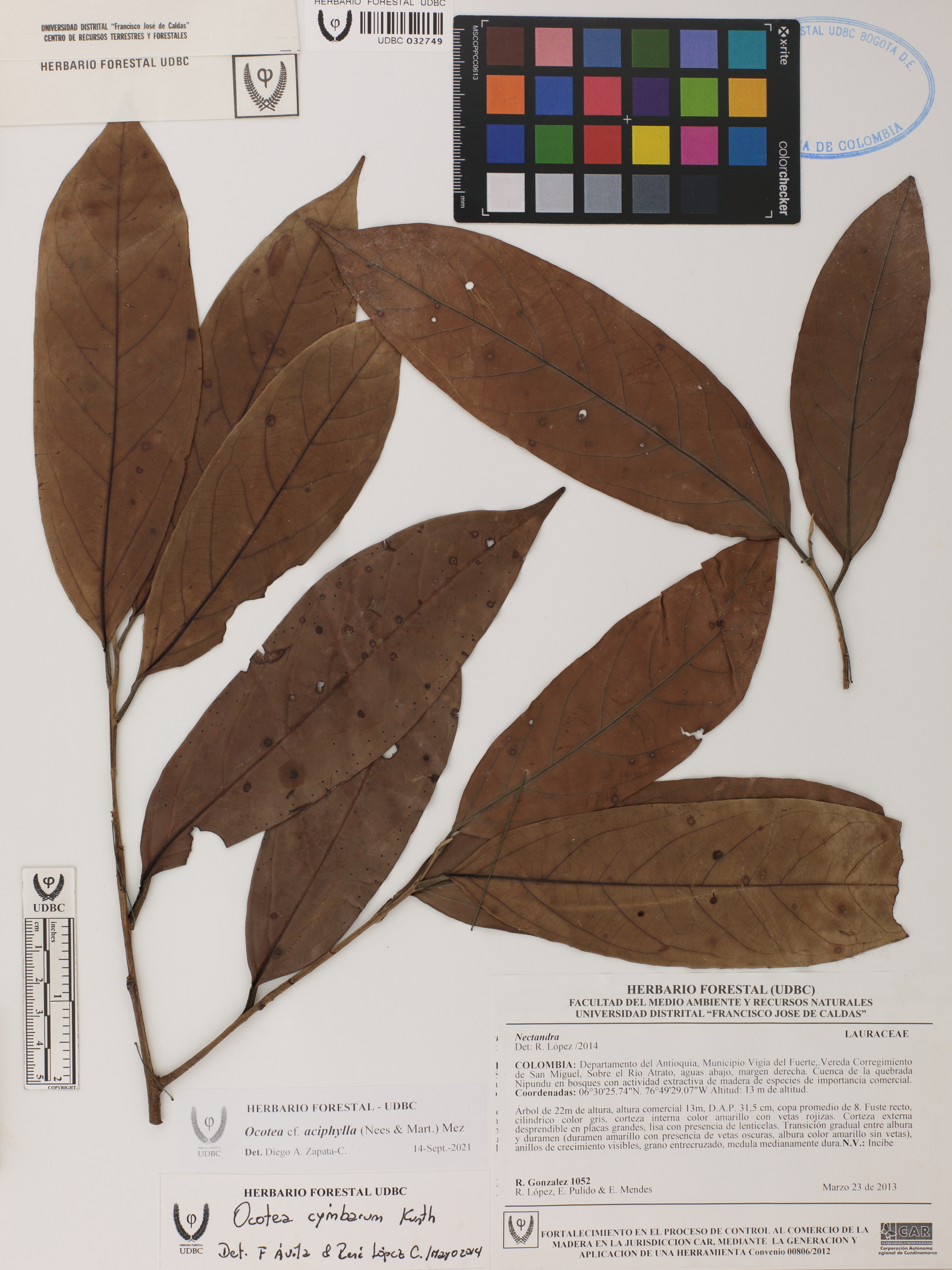 | dc.description | Fotografía del ejemplar González, R. 1052, determinado como Ocotea aciphylla en el año 2021 | |