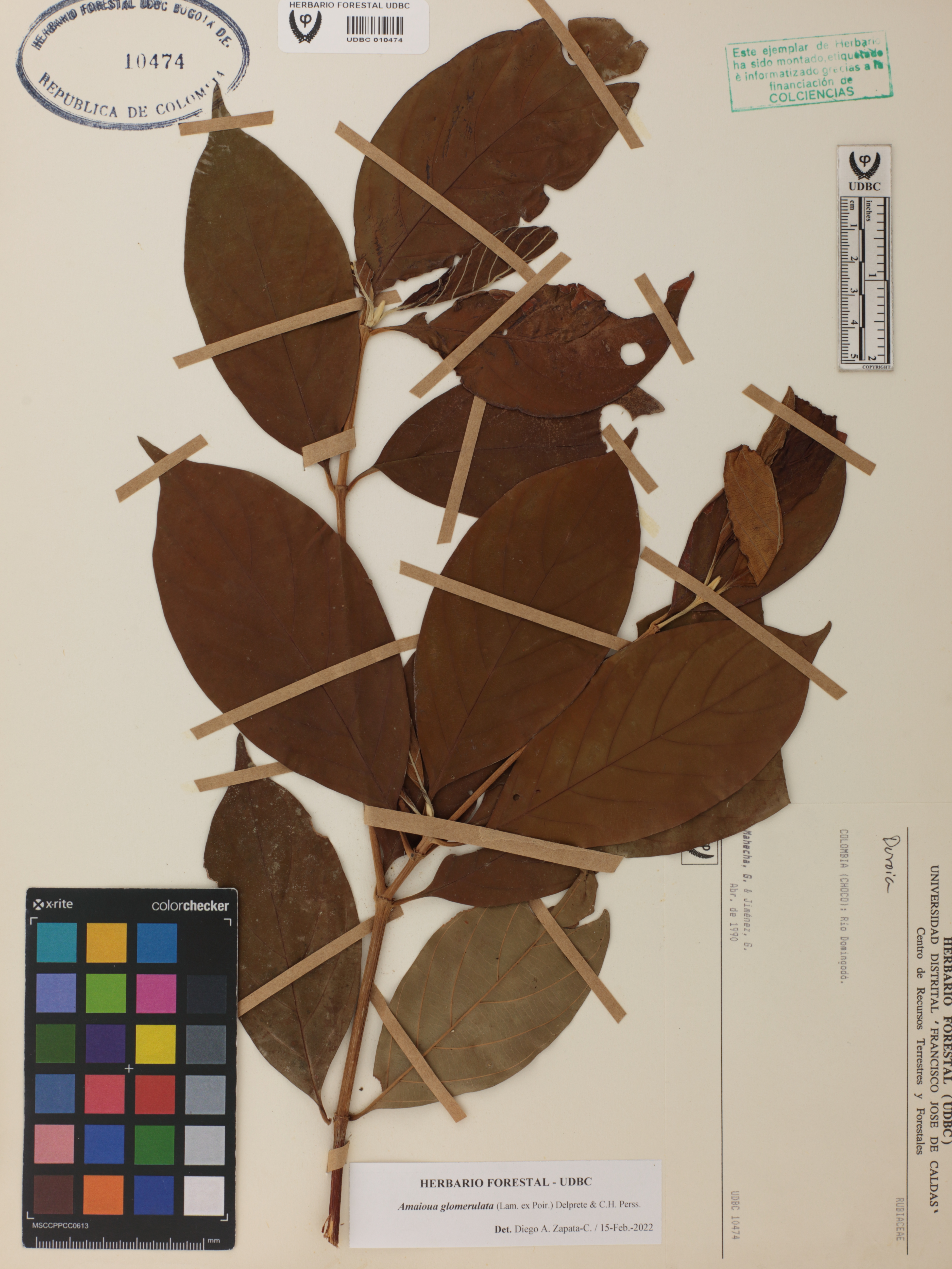 Fotografía del ejemplar Mahecha, G., determinado como Amaioua glomerulata en el año 2022