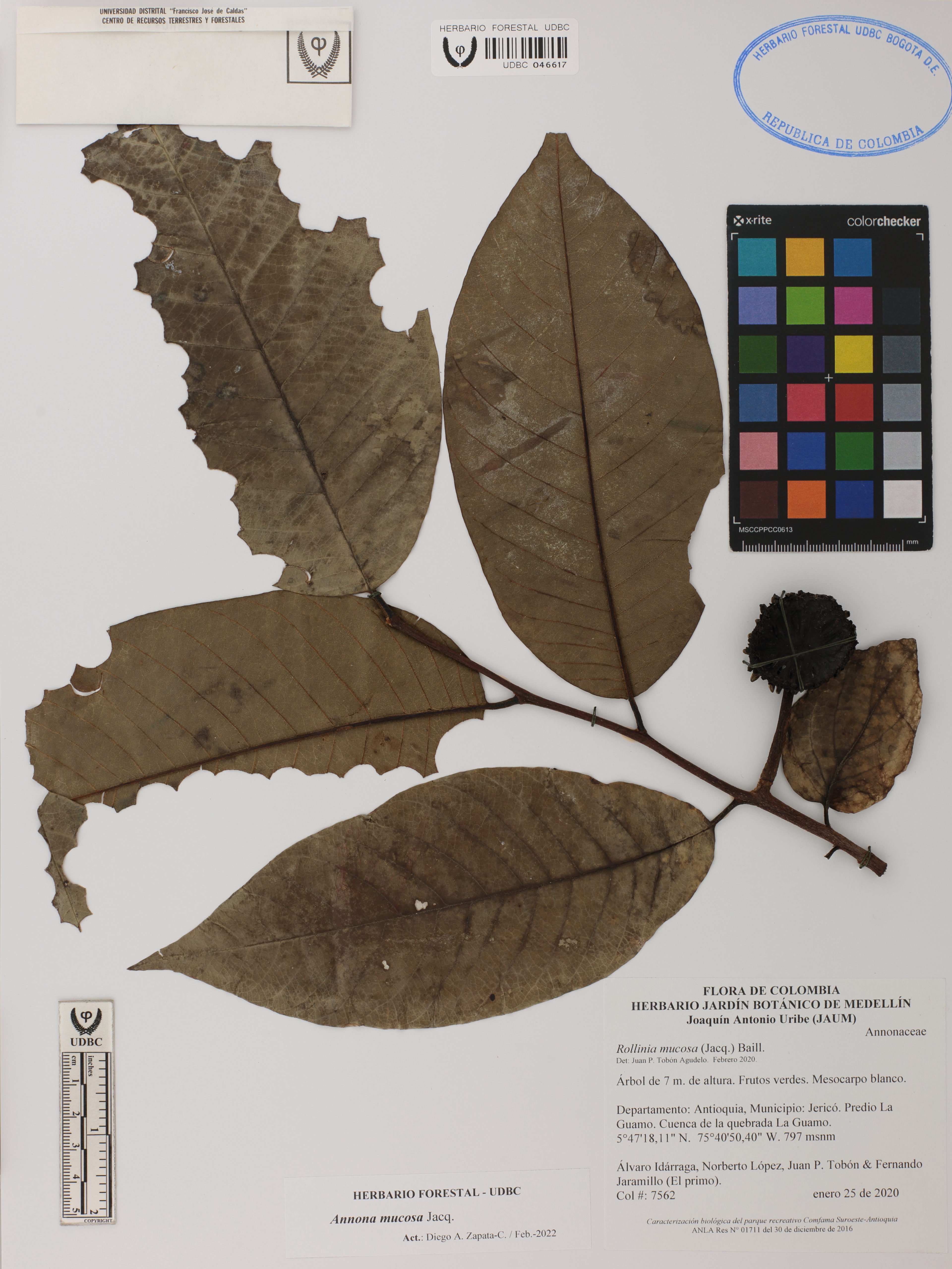 | dc.description | Fotografía del ejemplar Idárraga, Á. 7562, determinado como Annona mucosa en el año 2020 | |
