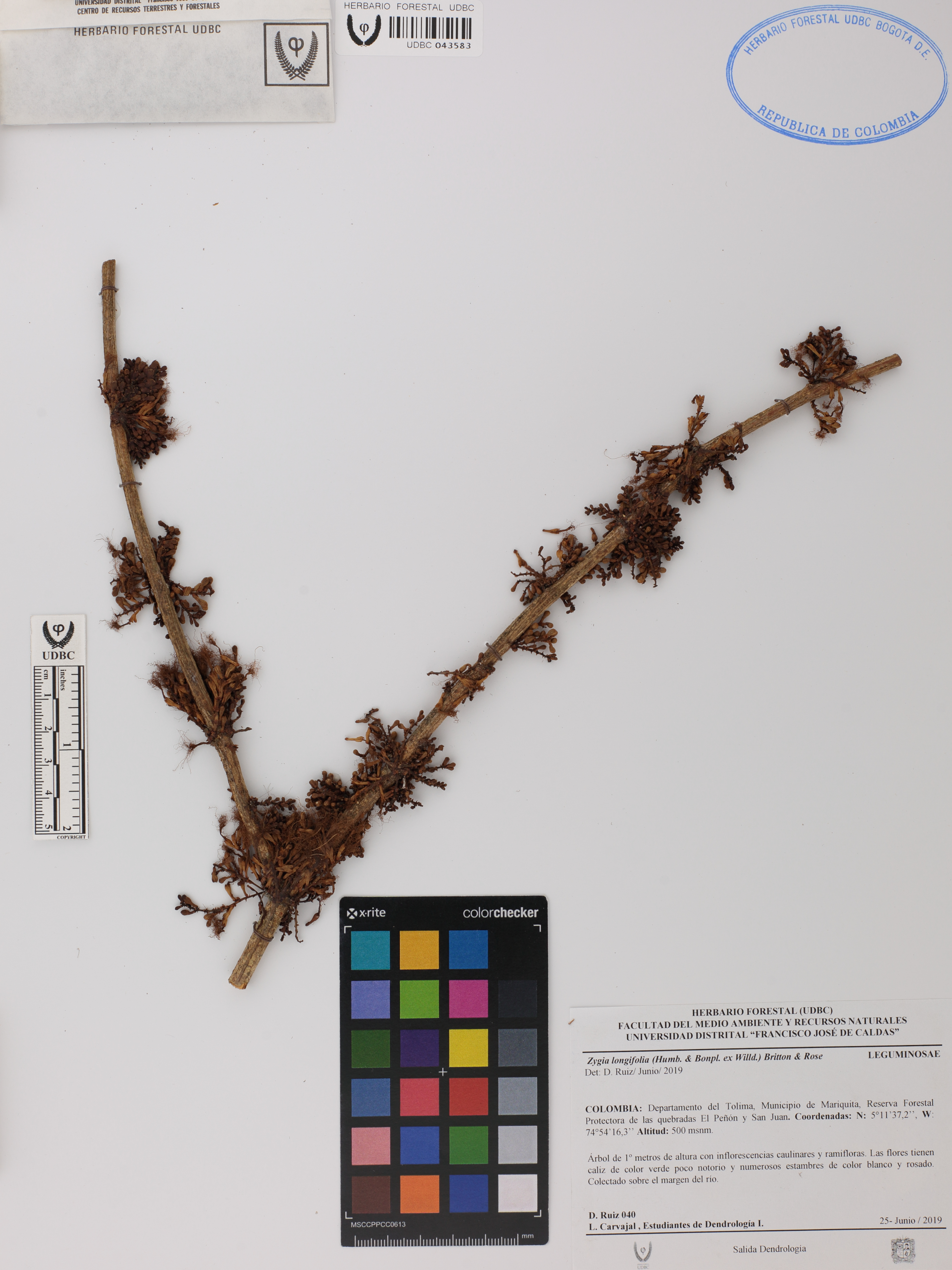 Fotografía del ejemplar Ruiz-M., D. 40, determinado como Zygia longifolia en el año 2019