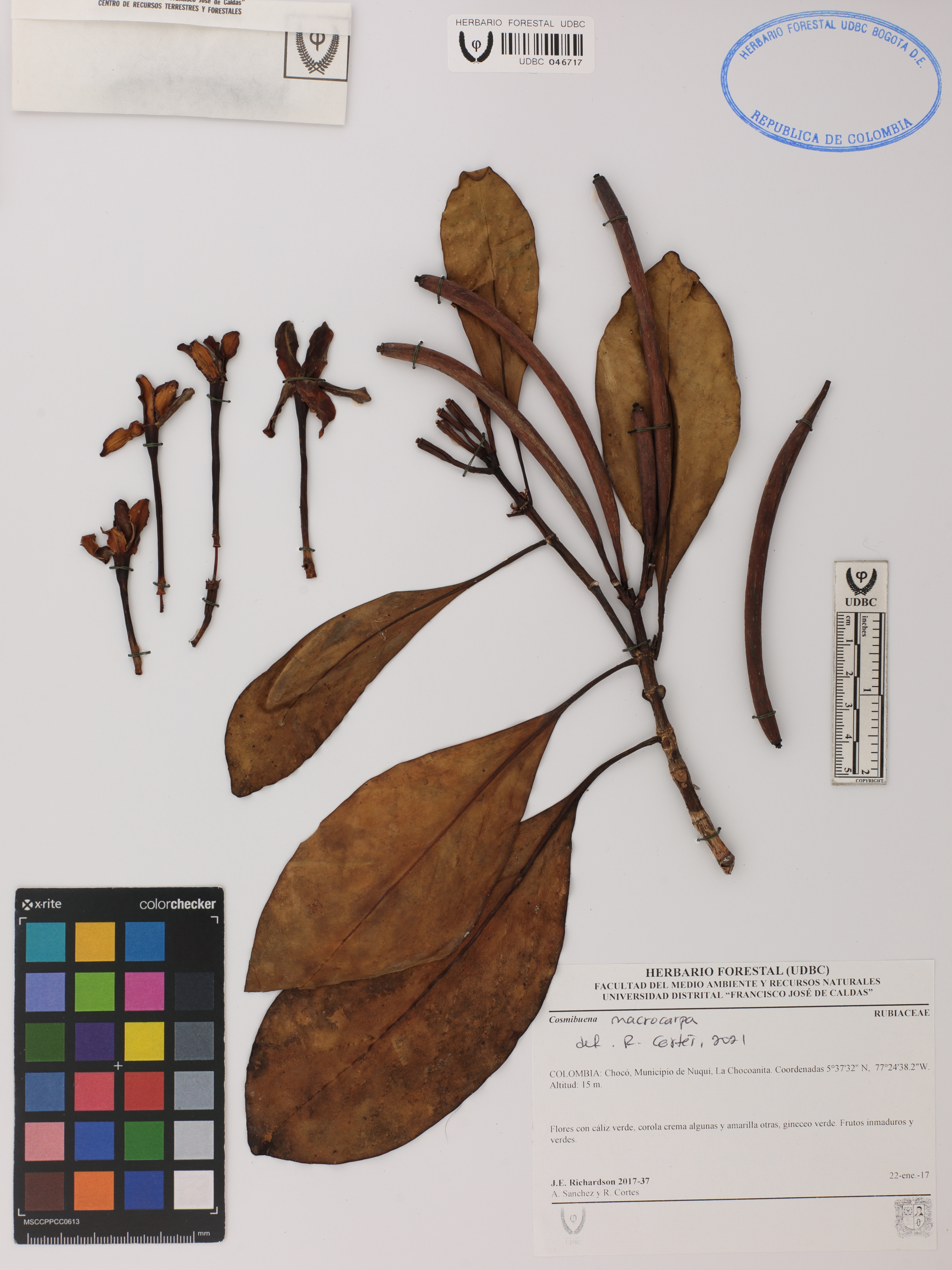 Fotografía del ejemplar Richardson, J. 37, determinado como Cosmibuena macrocarpa en el año 2021