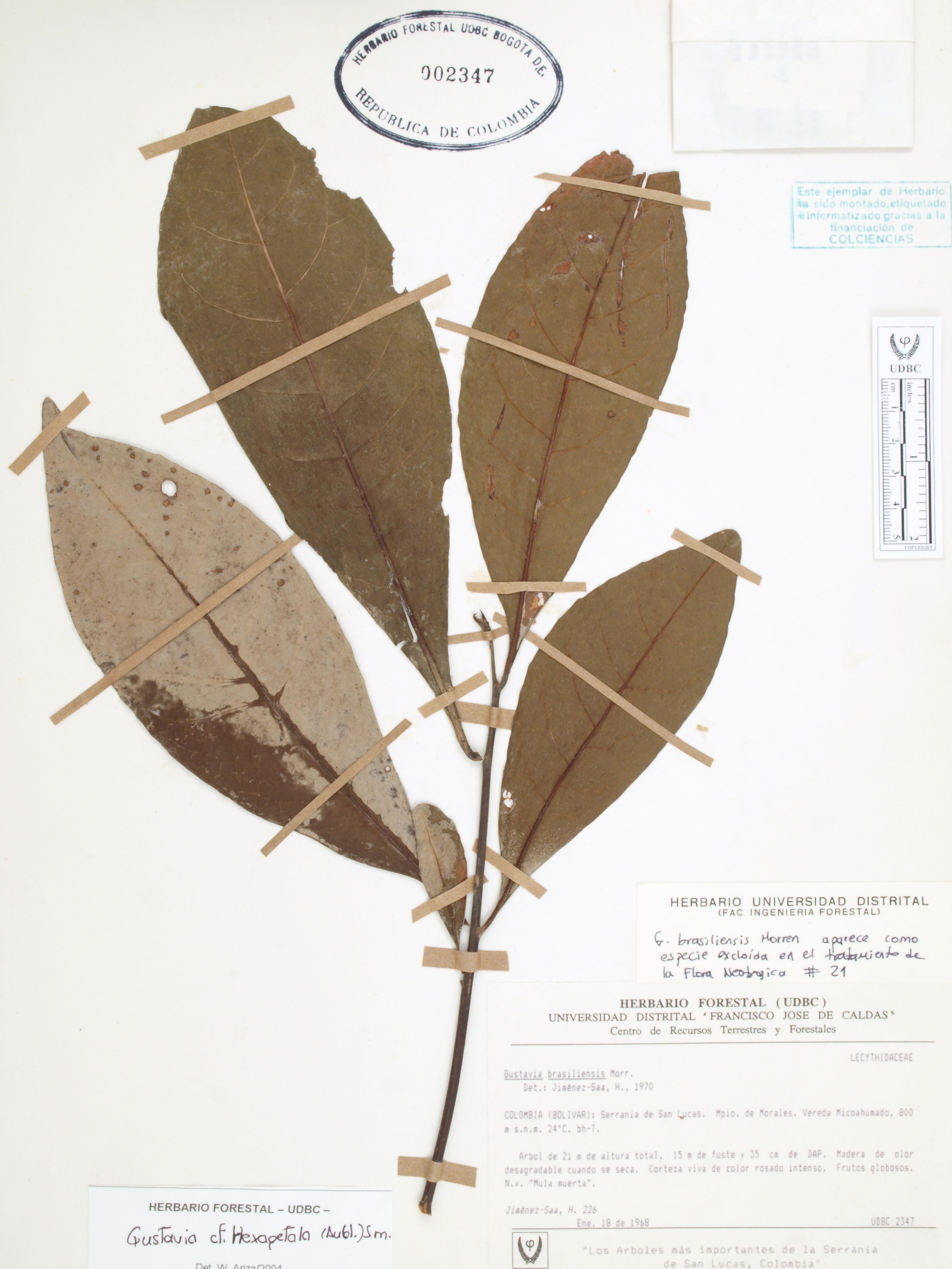 | dc.description | Fotografía del ejemplar Jiménez-Saa, H. 226, determinado como Gustavia dubia en el año 2024 | |