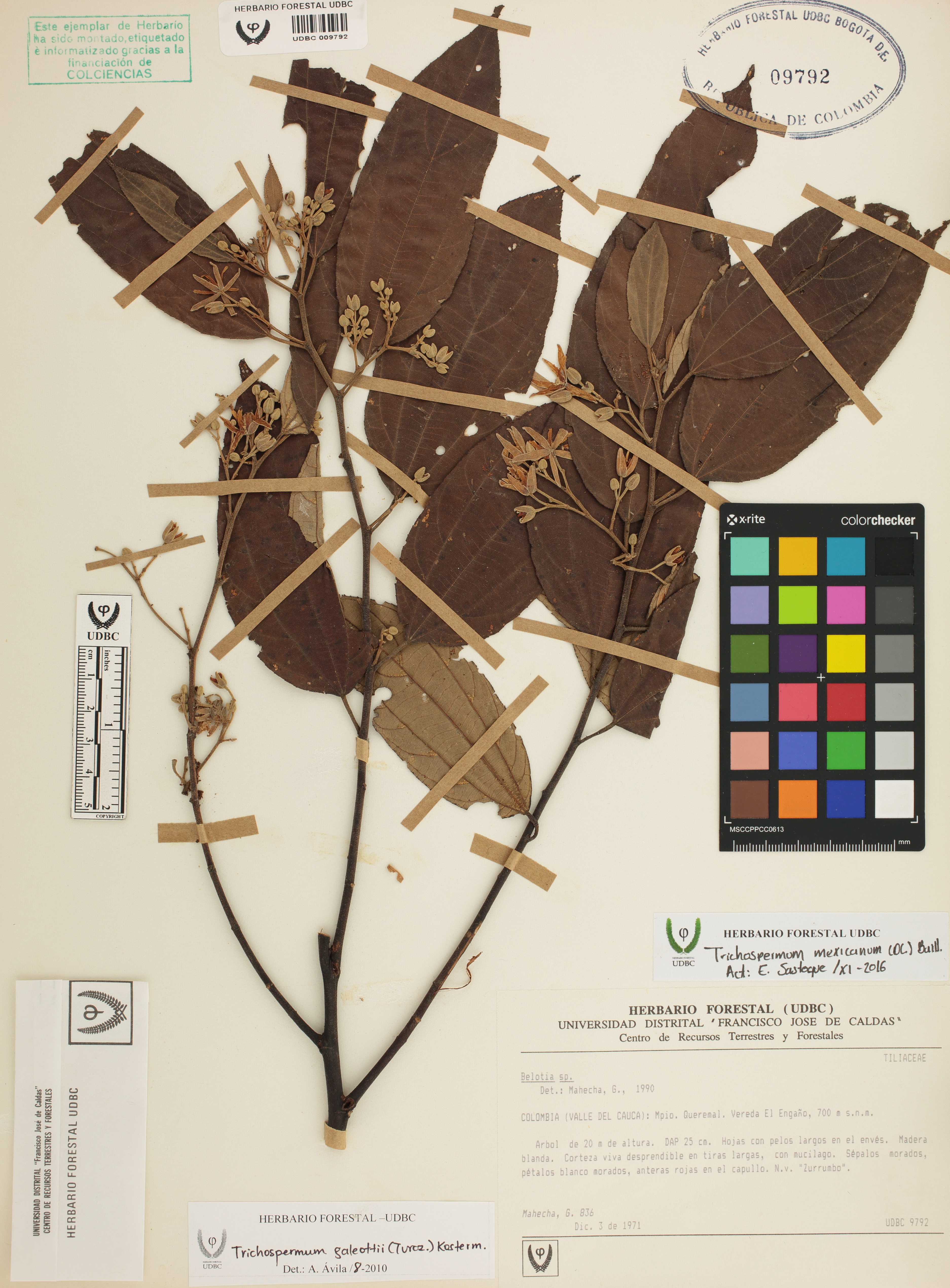 Fotografía del ejemplar Mahecha, G. 836, determinado como Trichospermum mexicanum en el año 2010
