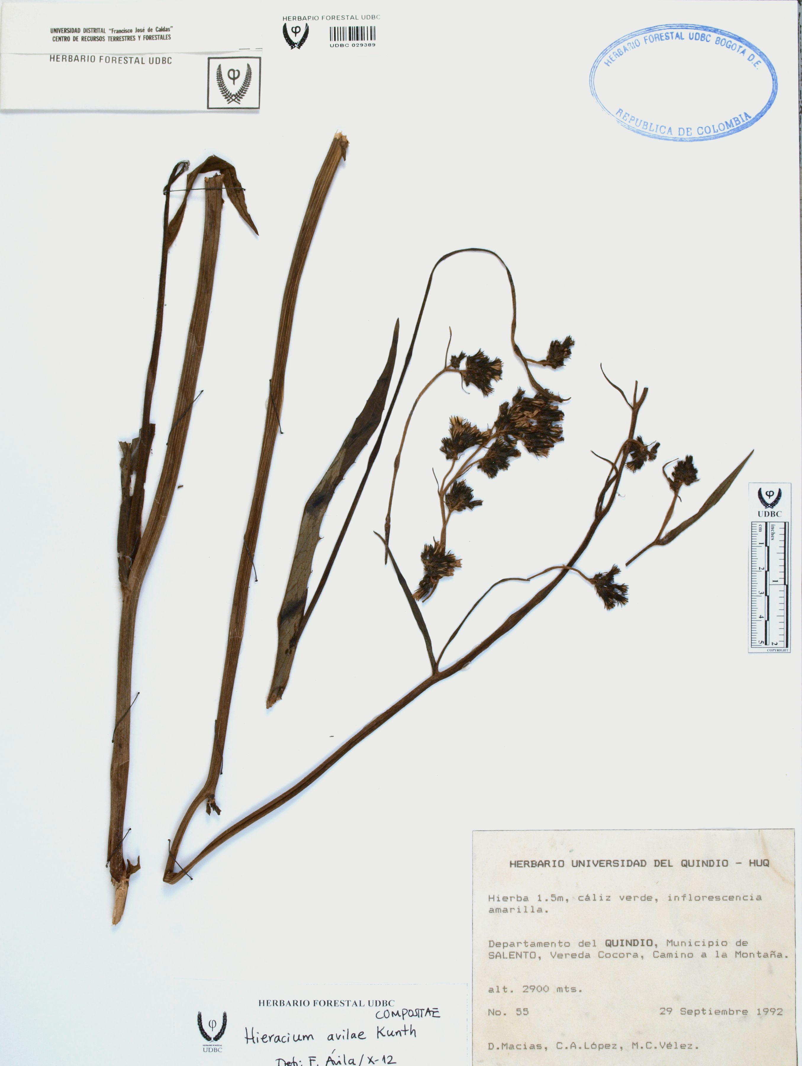 Fotografía del ejemplar Macías, D. 55, determinado como Hieracium avilae en el año 2012