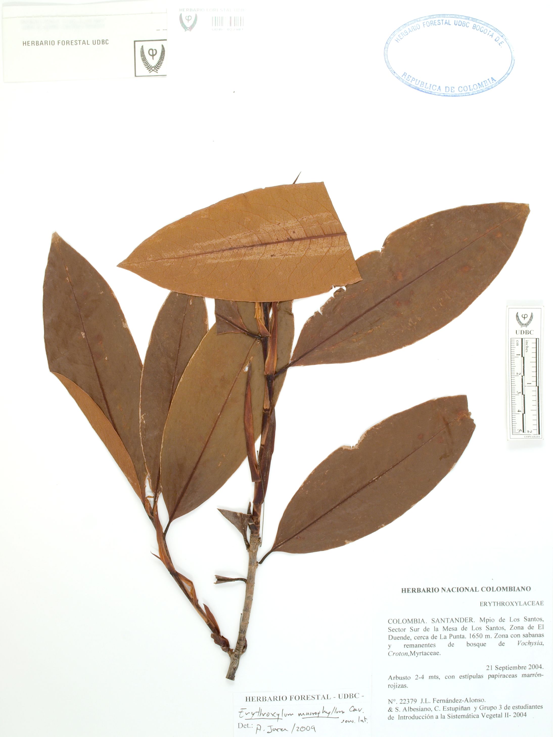 | dc.description | Fotografía del ejemplar Fernández-Alonso, J. 22379, determinado como Erythroxylum macrophyllum en el año 2009 | |