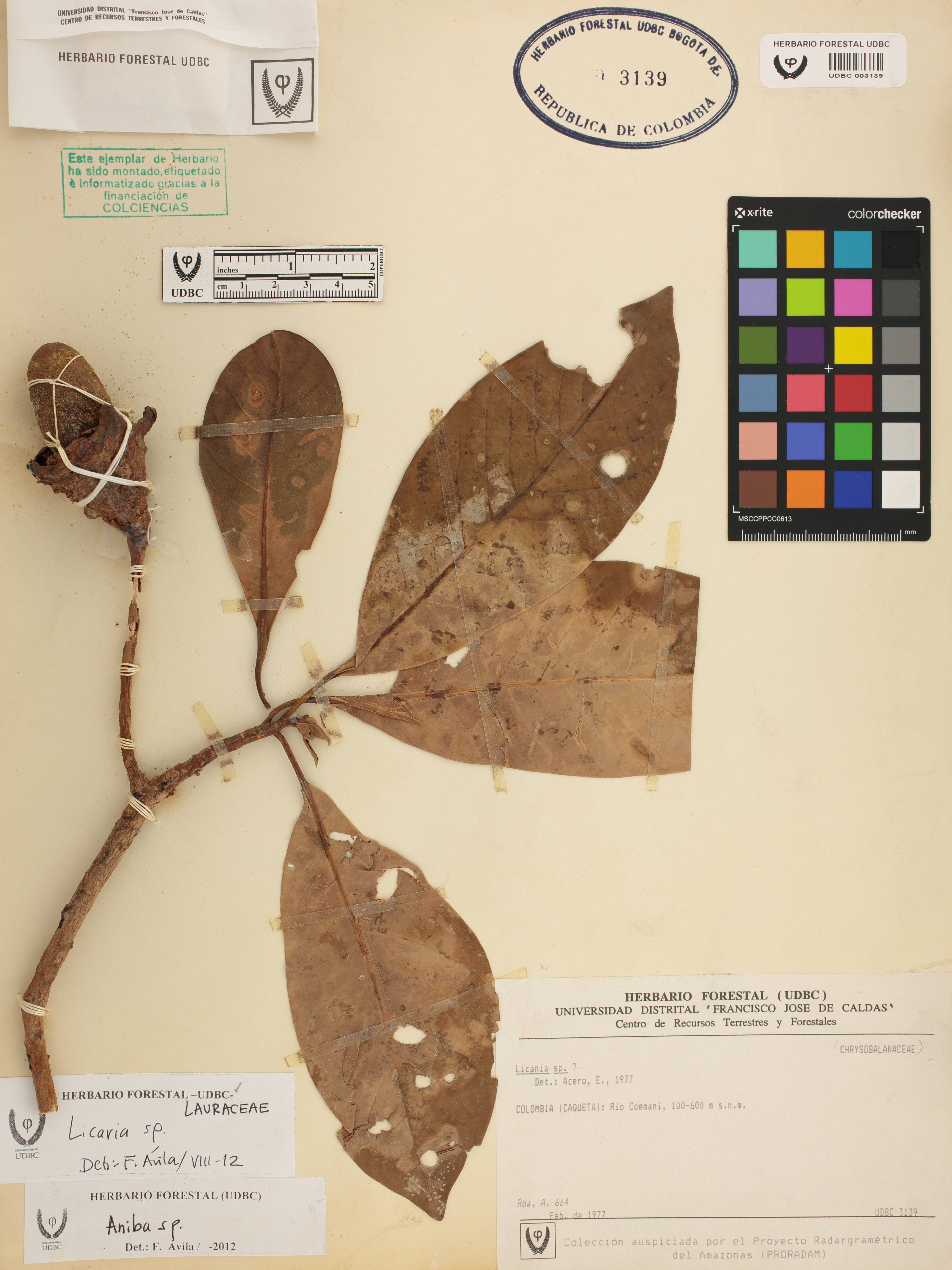 Fotografía del ejemplar Roa, A. 664, determinado como Licaria sp. en el año 2012