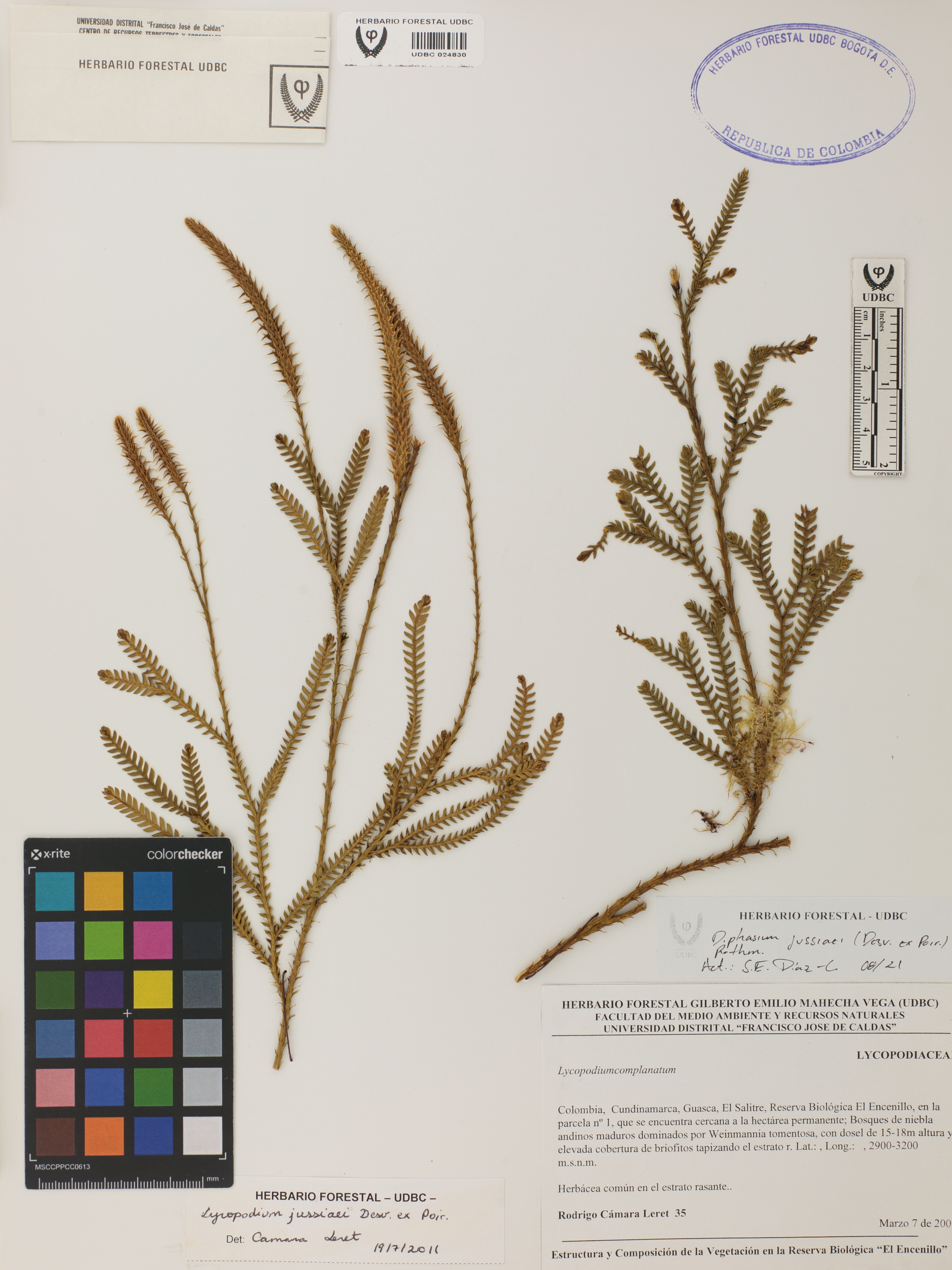 Fotografía del ejemplar Cámara, R. 35, determinado como Diphasium jussiaei en el año 2011
