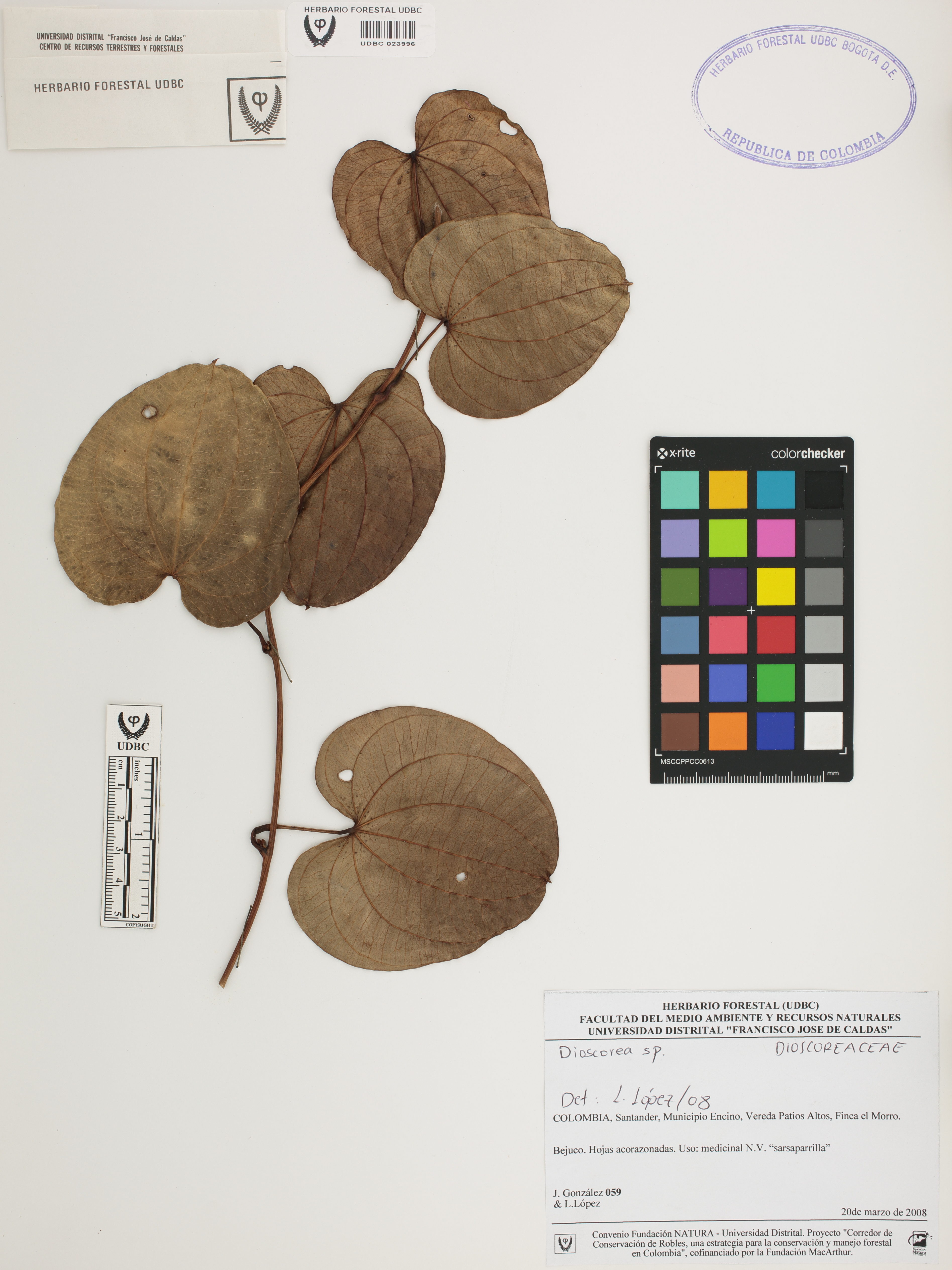 | dc.description | Fotografía del ejemplar González, J. 59, determinado como Dioscorea sp. en el año 2008 | |