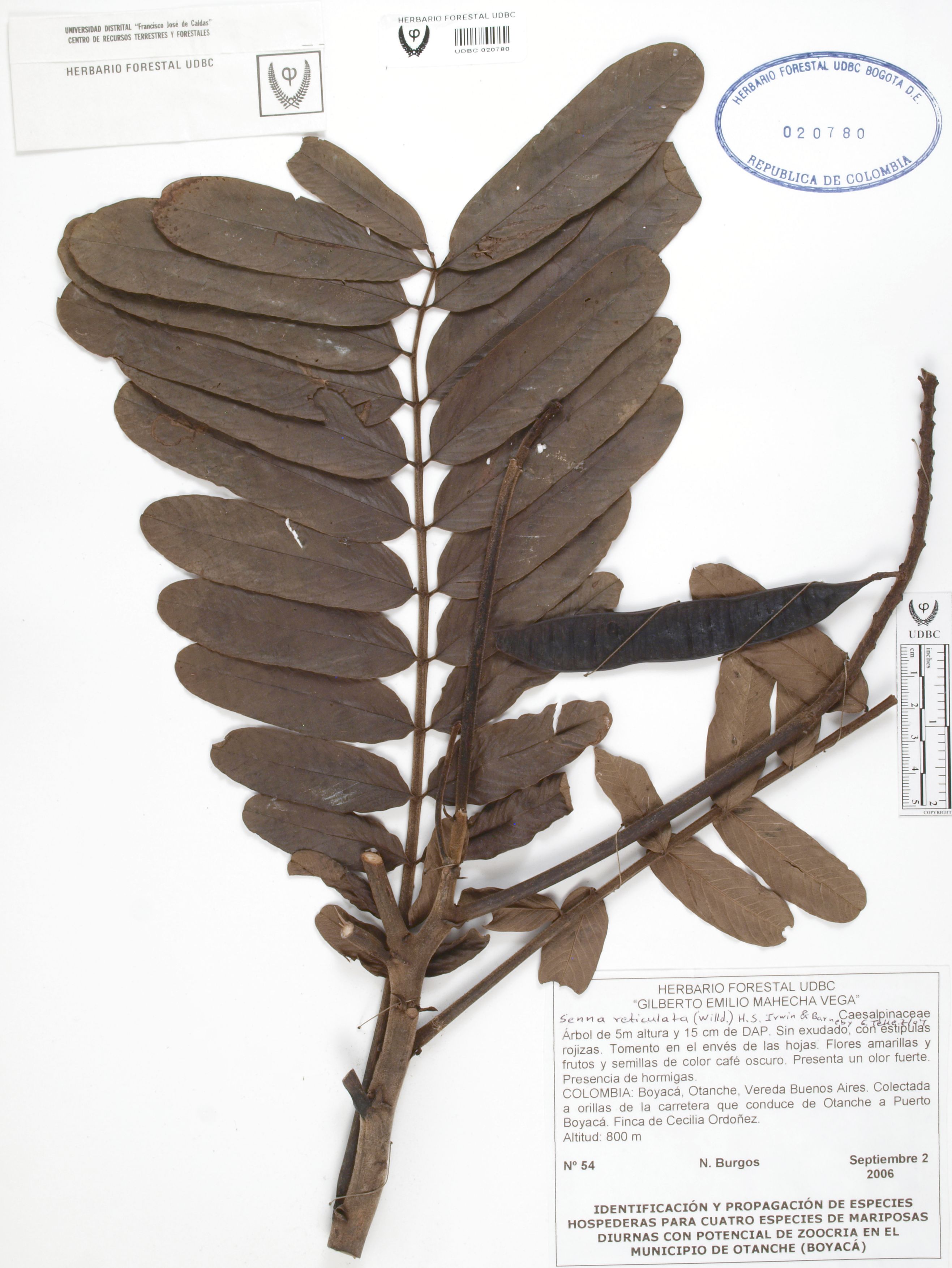Fotografía del ejemplar Burgos, N. 54, determinado como Senna reticulata en el año 2007