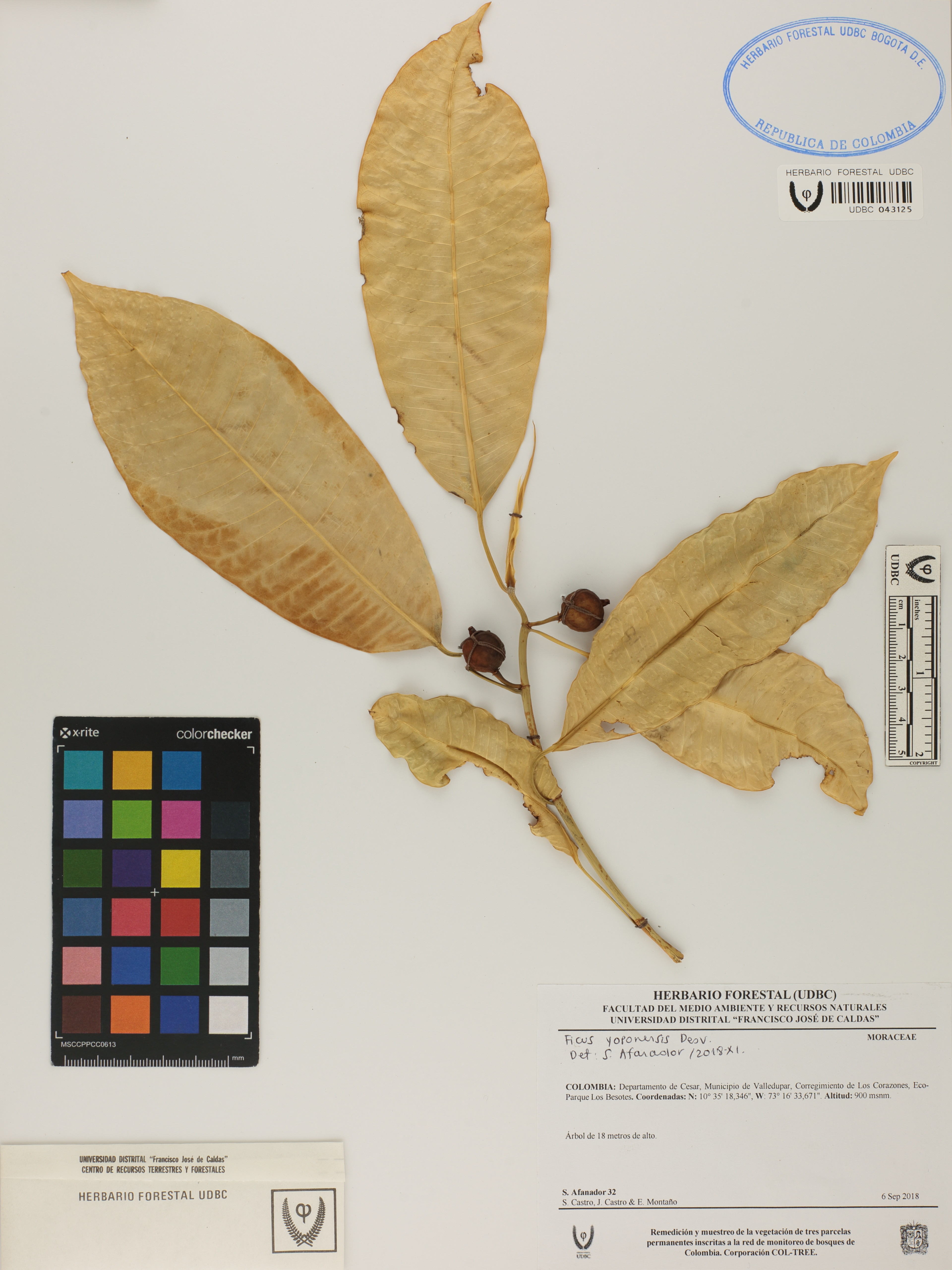 Fotografía del ejemplar Afanador, S. 32, determinado como Ficus yoponensis en el año 2018