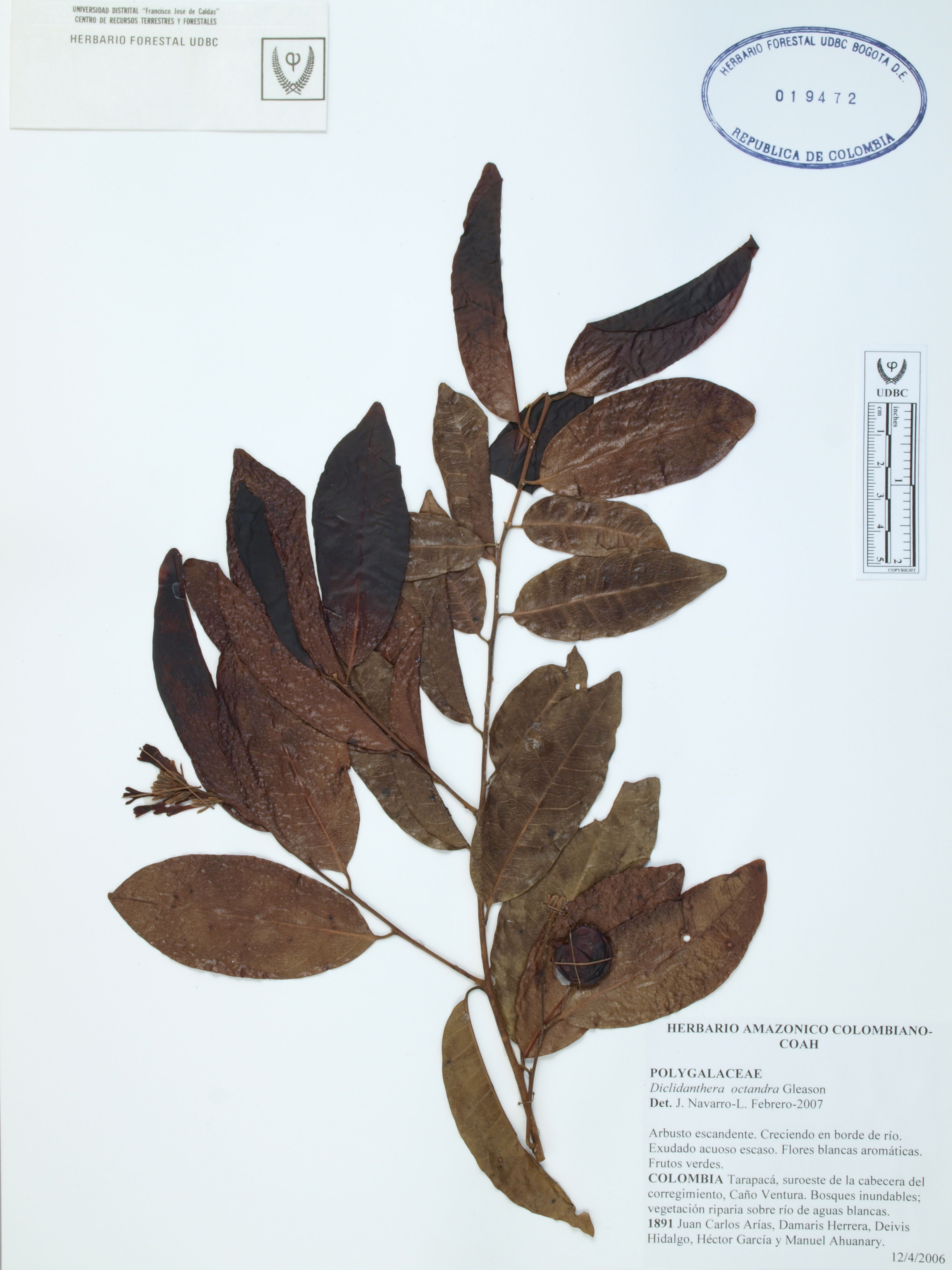 | dc.description | Fotografía del ejemplar Arias, J. 1891, determinado como Diclidanthera octandra en el año 2007 | |