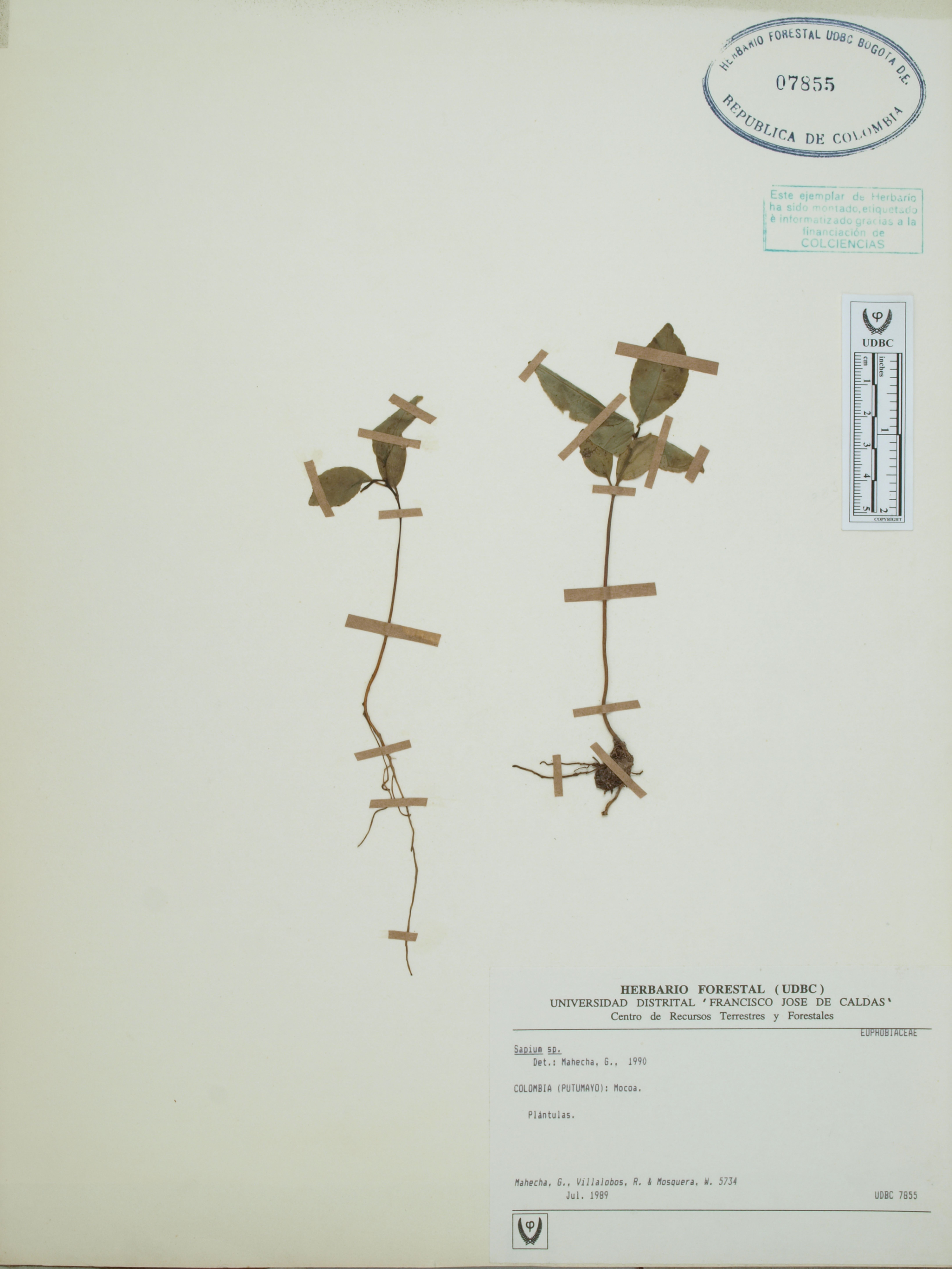 Fotografía del ejemplar Mahecha, G. 5734, determinado como Sapium sp.