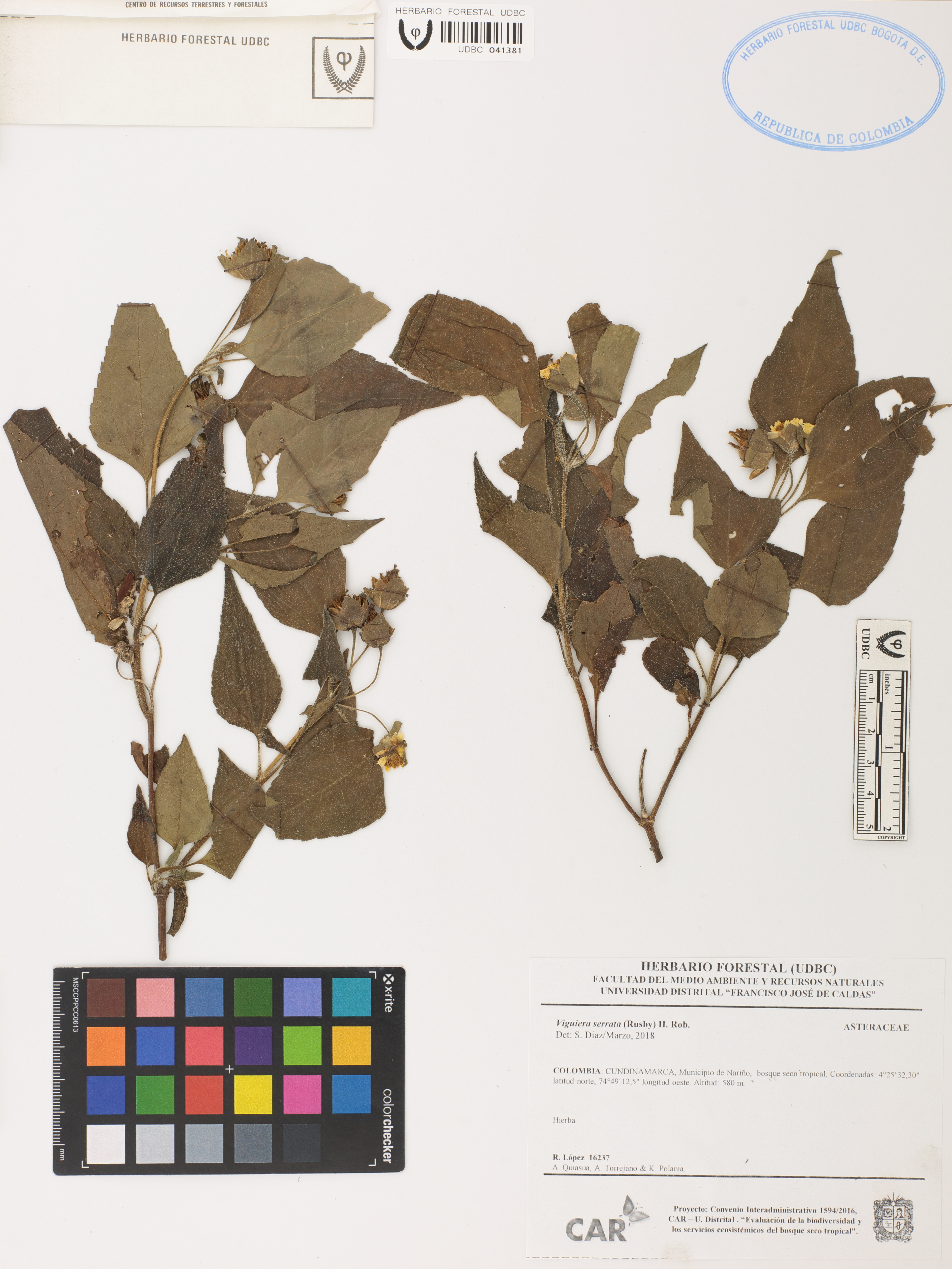 Fotografía del ejemplar López, R. 16237, determinado como Viguiera serrata en el año 2018