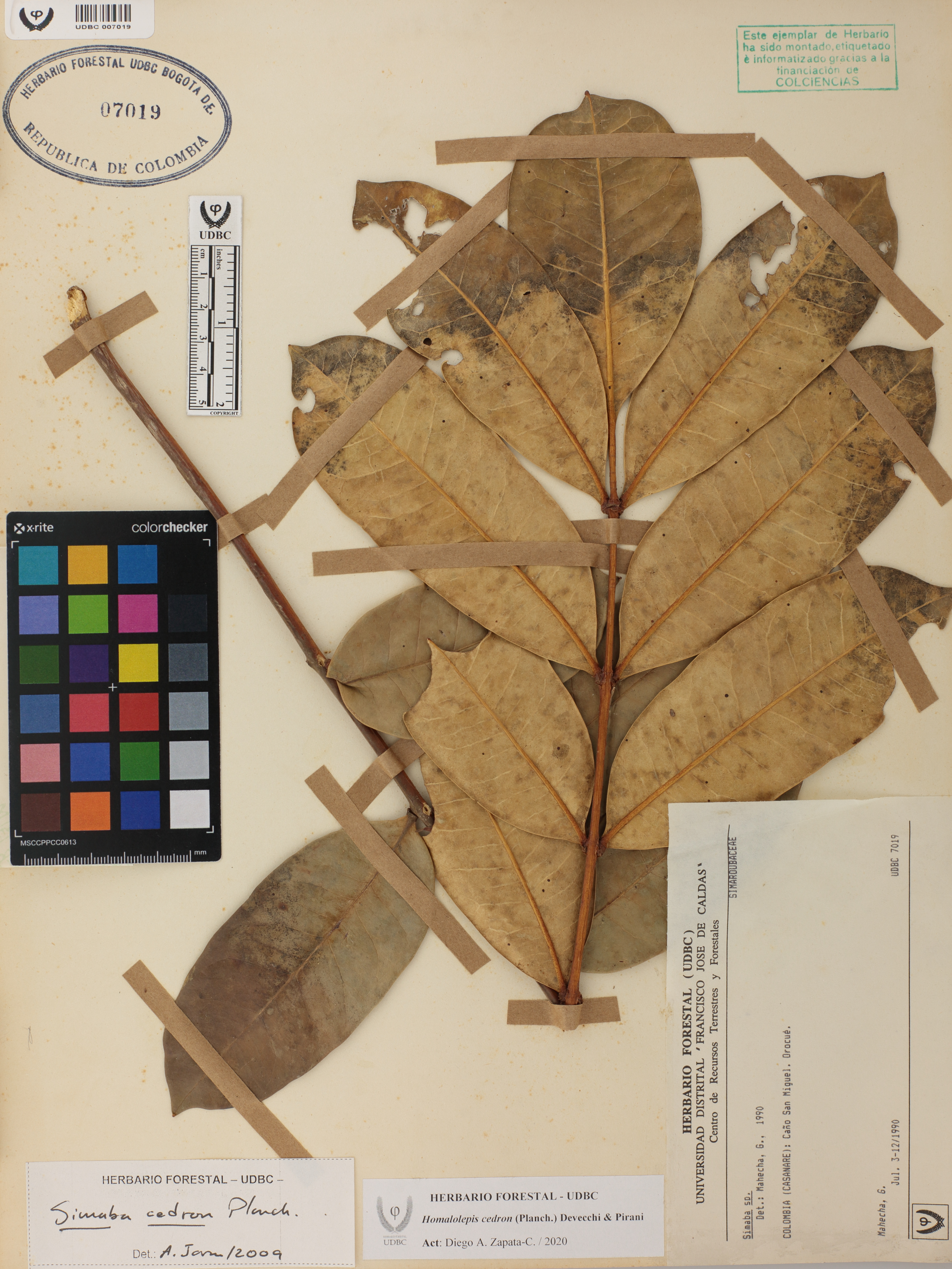 Fotografía del ejemplar Mahecha, G., determinado como Homalolepis cedron en el año 2009