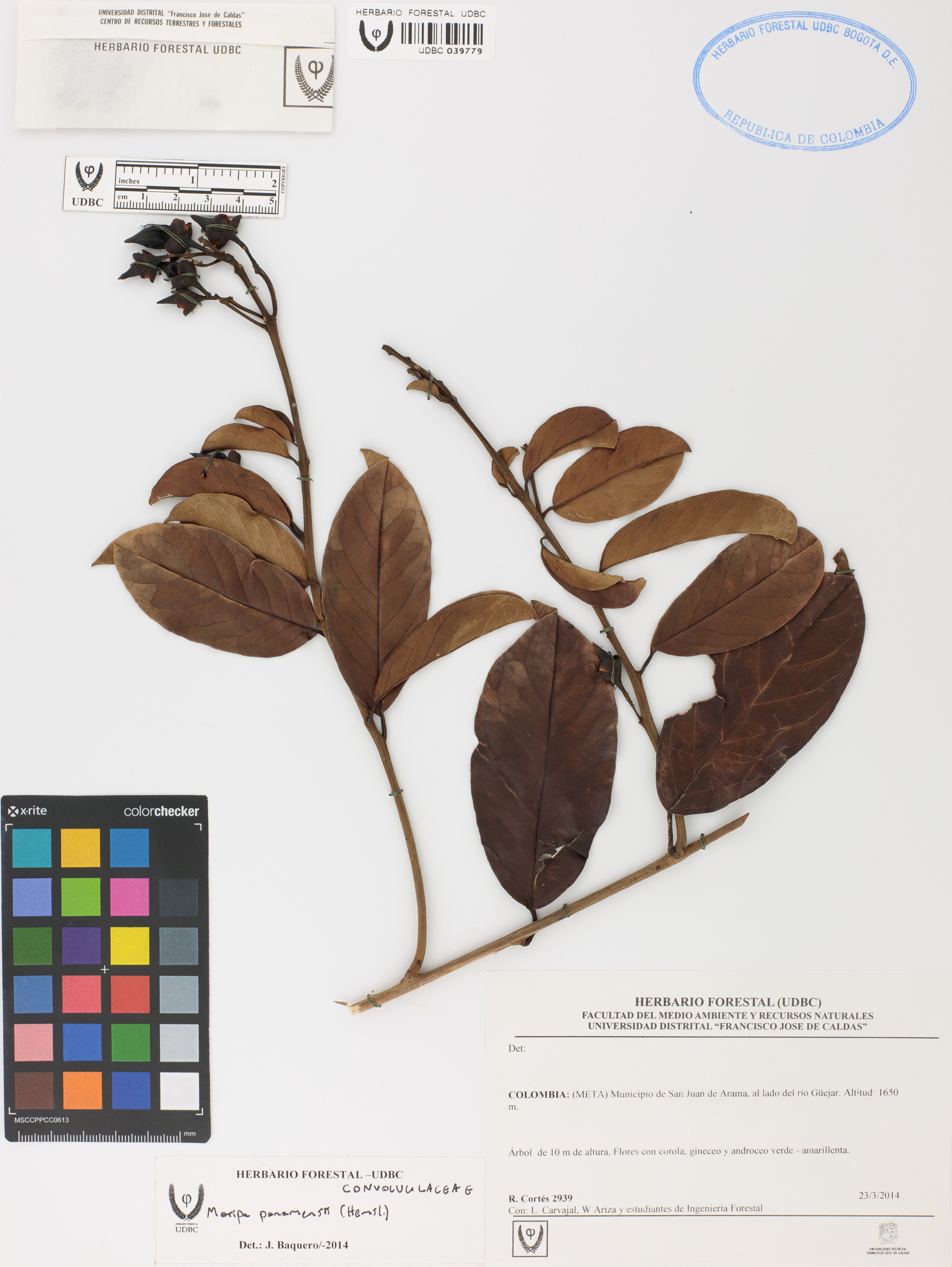 | dc.description | Fotografía del ejemplar Cortés, R. 2939, determinado como Maripa panamensis en el año 2014 | |