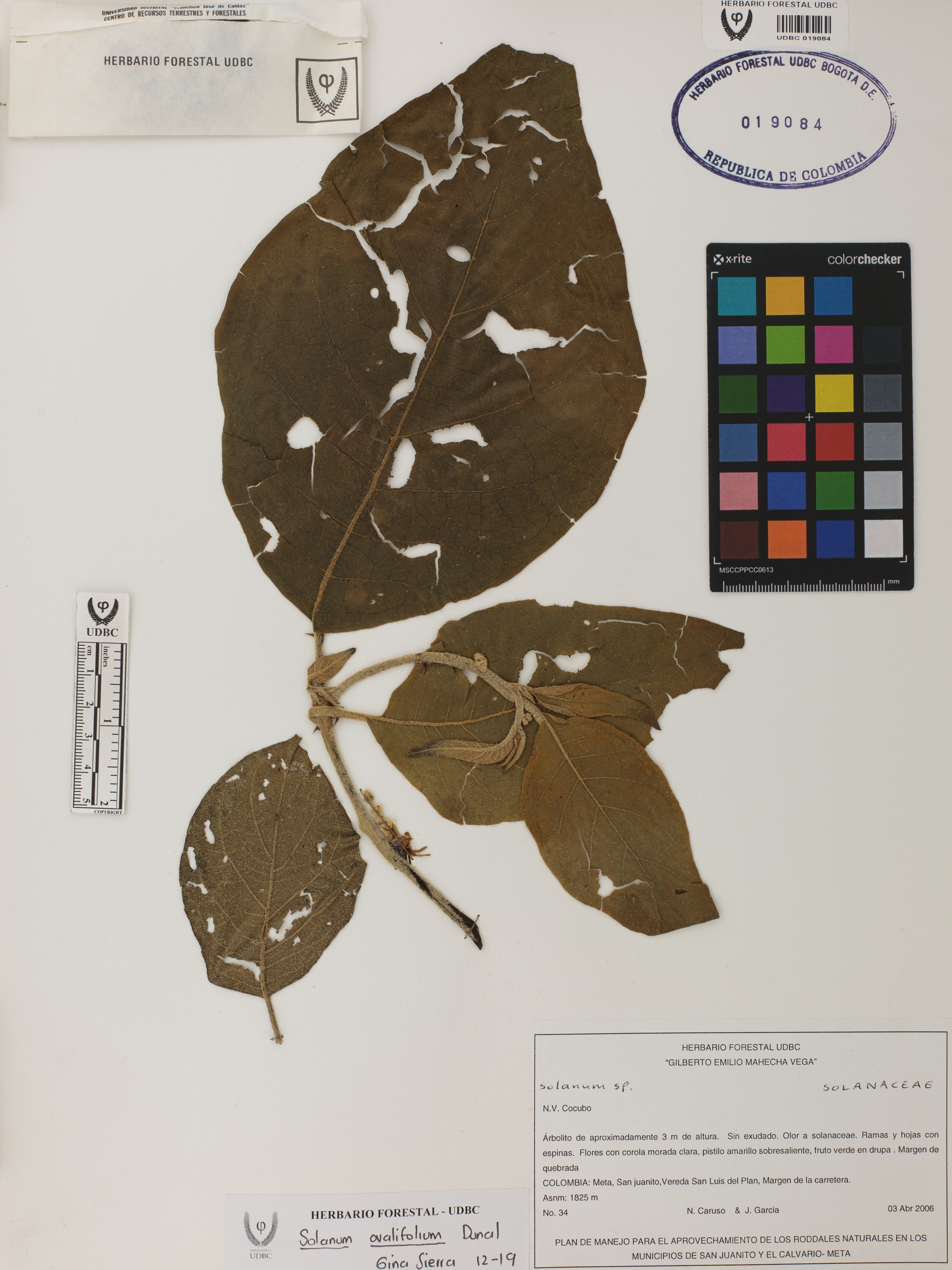 Fotografía del ejemplar Caruso, N. 34, determinado como Solanum ovalifolium en el año 2019