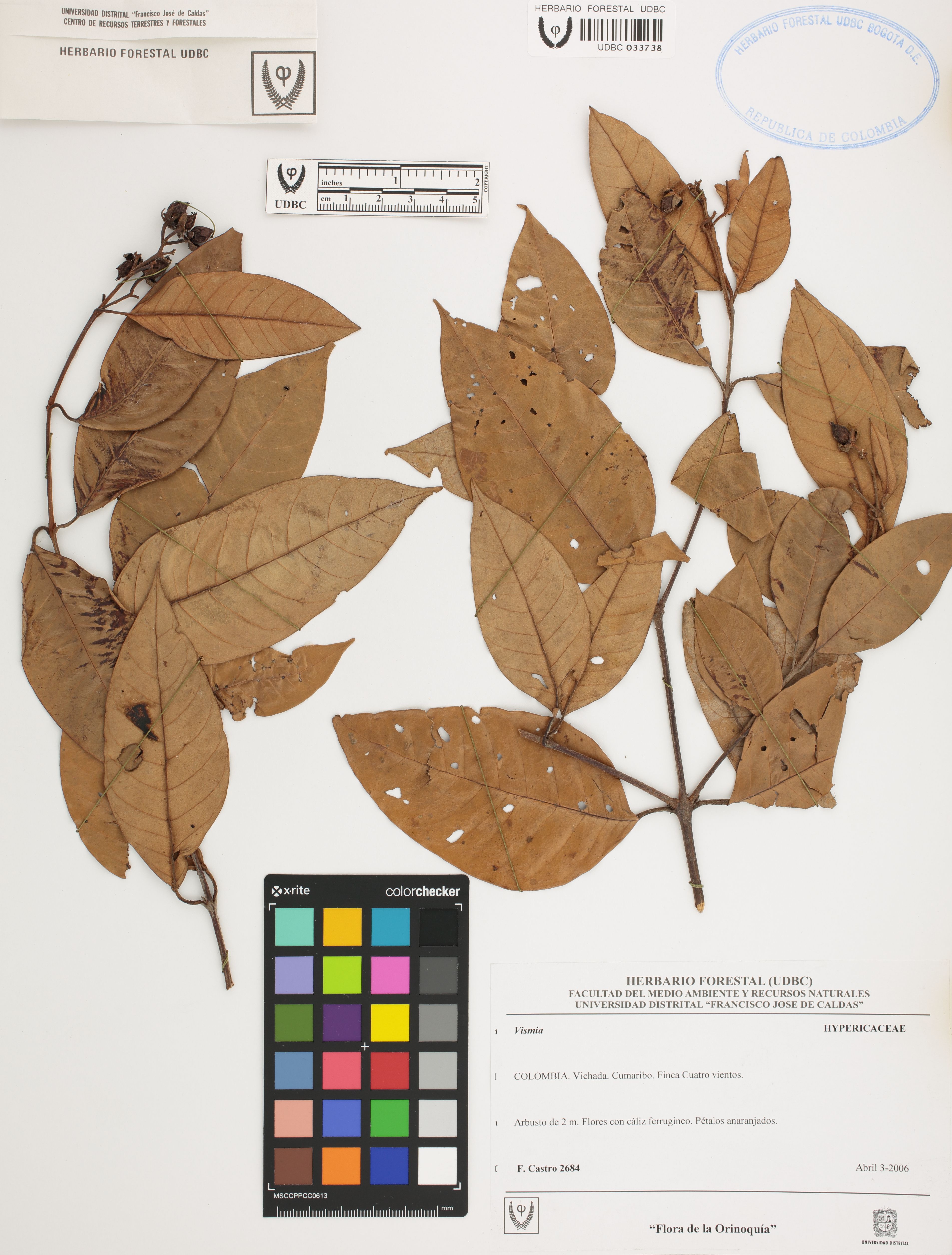 Fotografía del ejemplar Castro, F. 2684, determinado como Vismia sp.