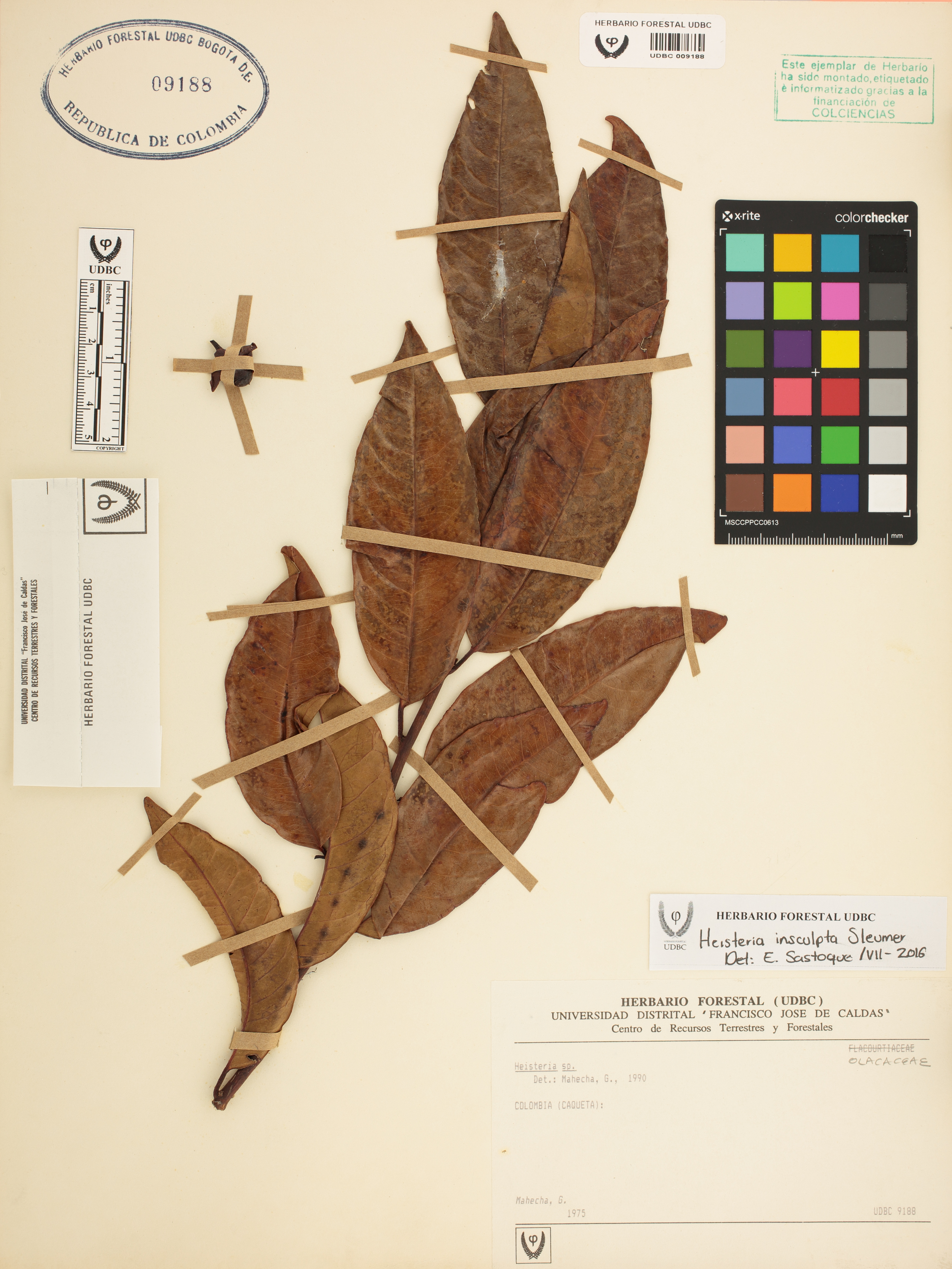 Fotografía del ejemplar Mahecha, G., determinado como Heisteria insculpta en el año 2016