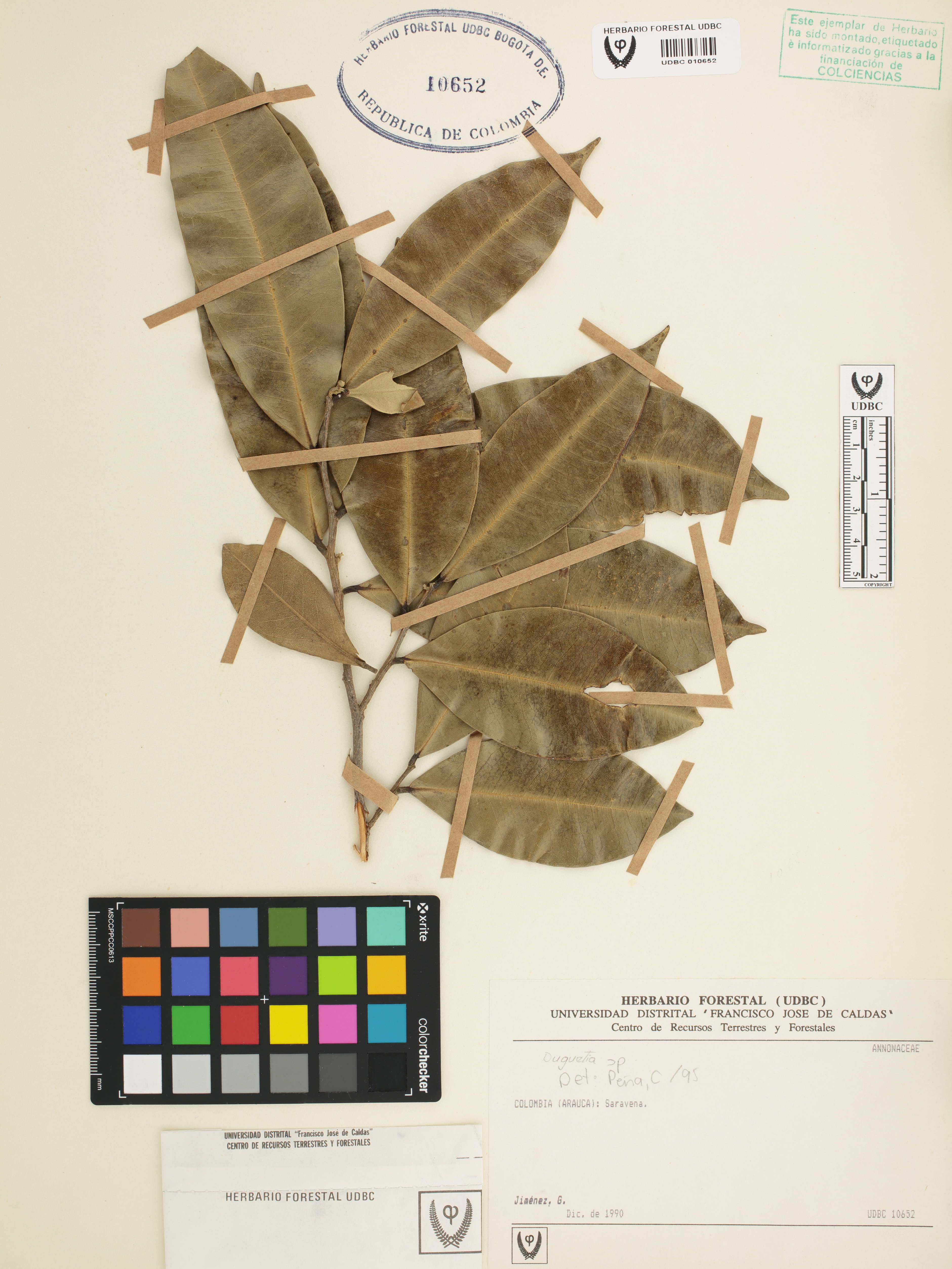 Fotografía del ejemplar Jiménez, G., determinado como Duguetia sp. en el año 1995